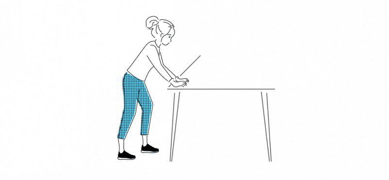- Berdiri di depan meja dan letakkan siku atau tangan Anda di sana.