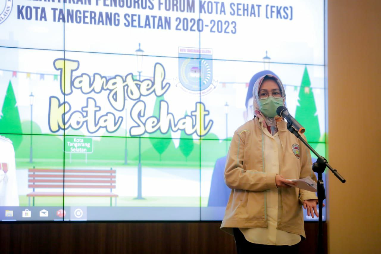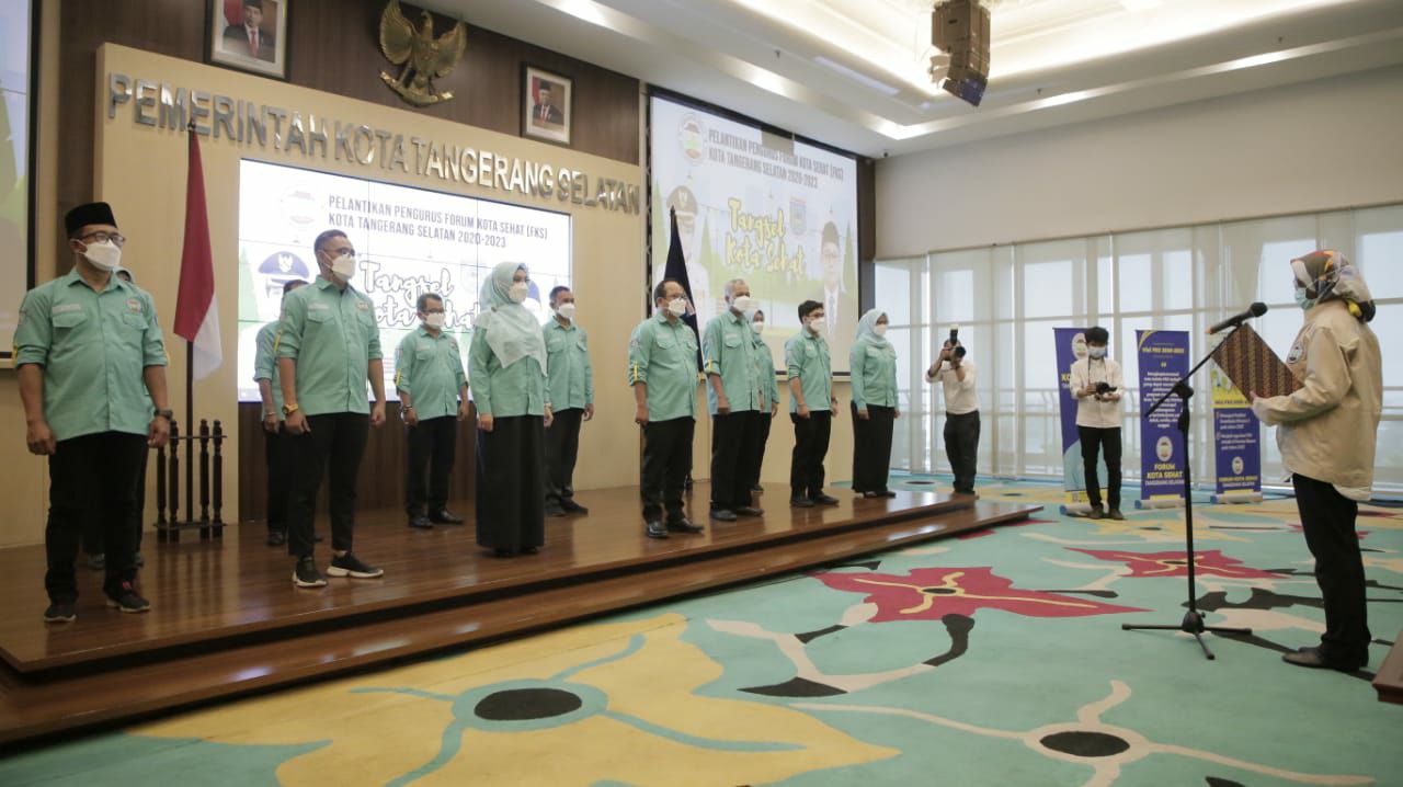 Walikota Tangerang Selatan (Tangsel) Airin Rachmi Diany melantik pengurus Forum Kota Sehat (FKS) periode tahun 2020-2023 di Aula Blandongan Lantai 4 Gedung Balaikota Tangsel, Jumat (19/3).