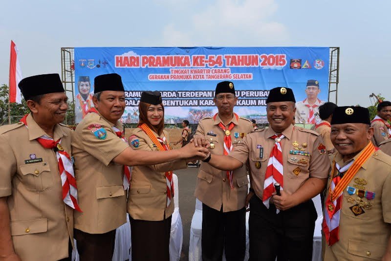 Dalam rangka peringatan hari Pramuka ke-54, seluruh anggota Pramuka Kwarcab Kota Tangerang Selatan (Tangsel) menghadiri upacara di Lapangan Batalyon Kavaleri/9, Serpong, Rabu, (26/8/2015). Walikota Tangsel Hj. Airin Rachmi Diany, SH. MH bertugas sebagai Pembina upacara, dalam pelaksanakan kegiatan upacara ini berlangsung dengan hikmat.
