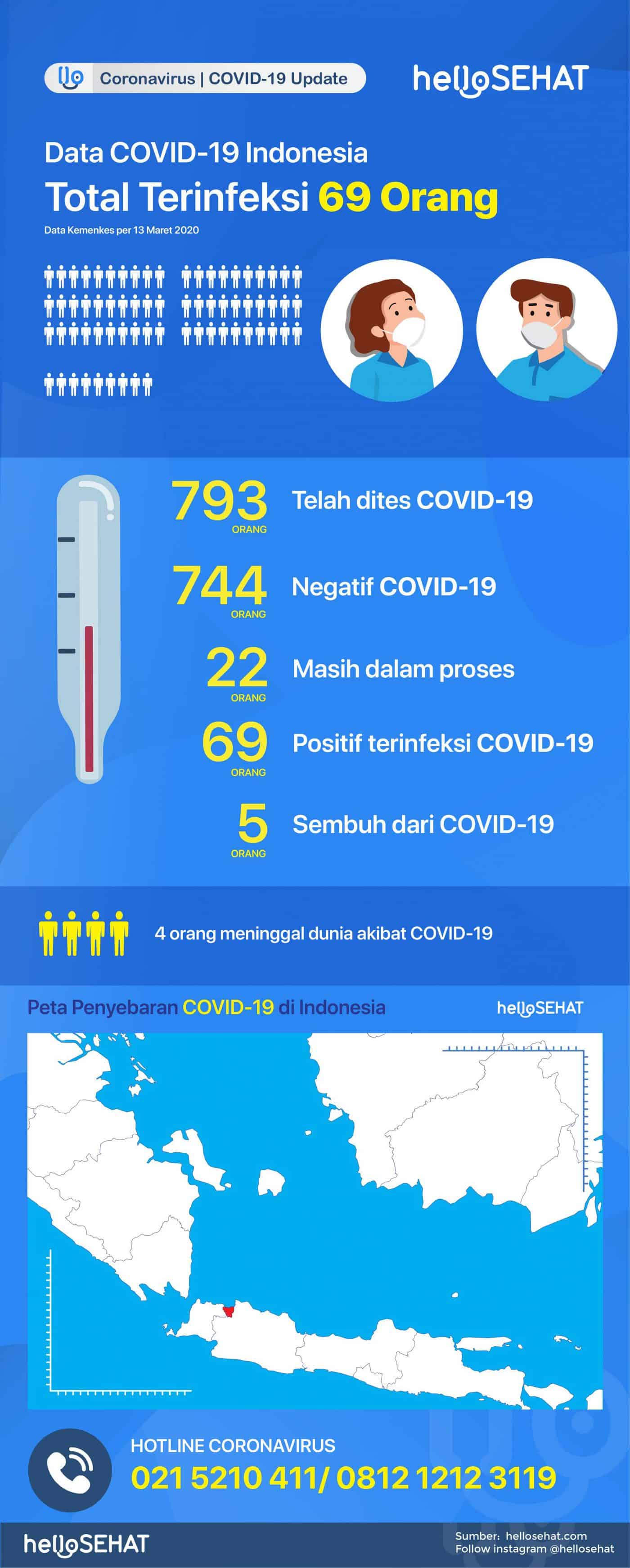 Angka kasus baru positif COVID-19 di Indonesia menyentuh angka 69