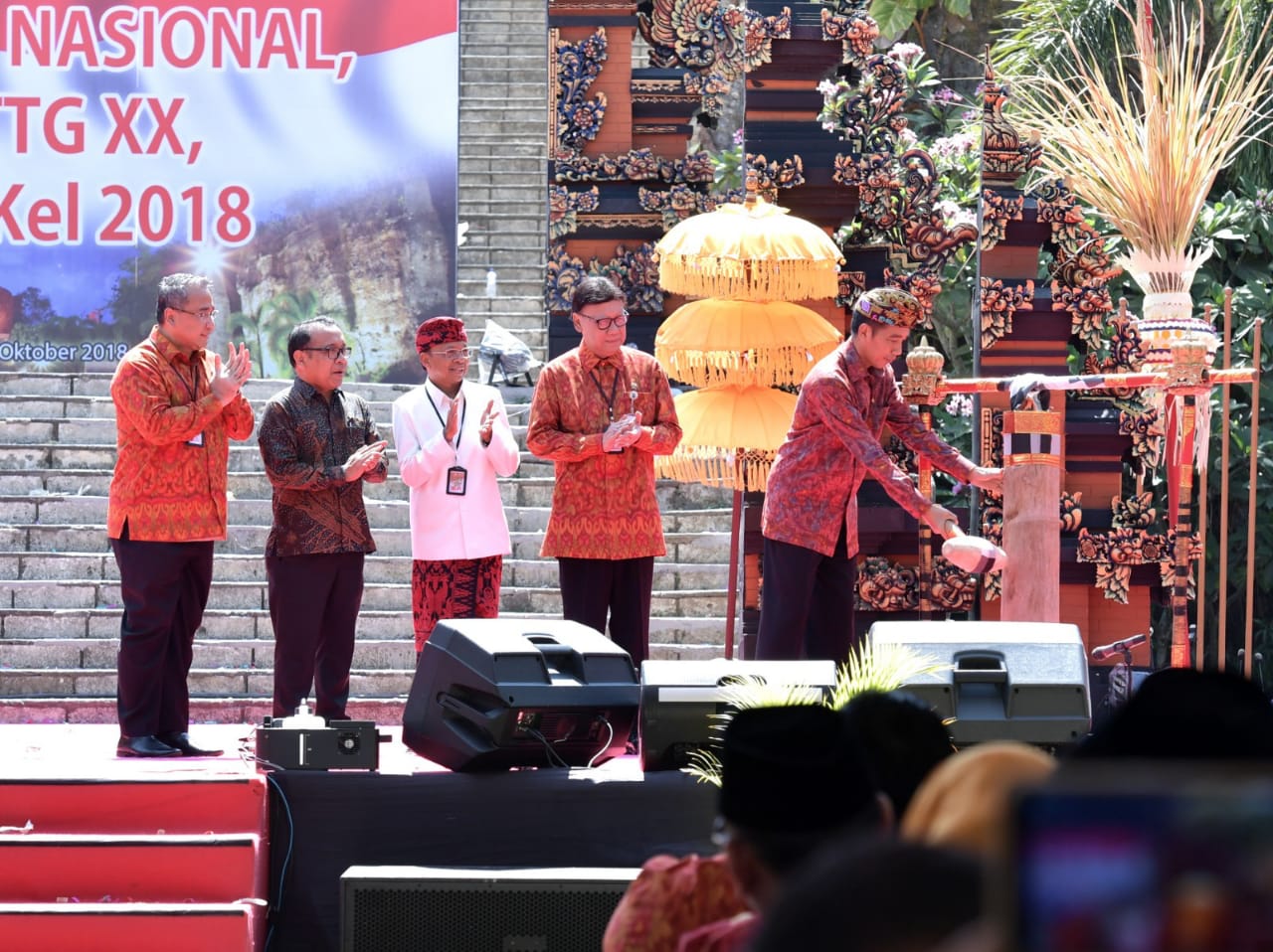 Turut hadir mendampingi Presiden dan Ibu Negara Iriana Joko Widodo adalah Menteri Sekretaris Negara Pratikno, Menteri Dalam Negeri Tjahjo Kumolo, Menteri Desa, Pembangunan Daerah Tertinggal, dan Transmigrasi Eko Putro Sandjojo, dan Gubernur Bali I Wayan Koster. (Sk/fid)