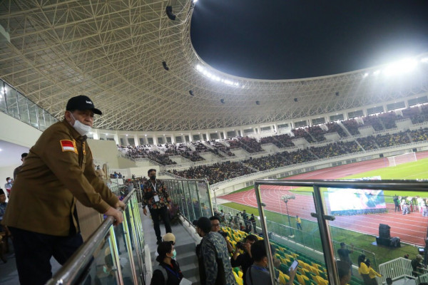 Gubernur Banten Wahidin Halim (WH) meresmikan Banten International Stadium (BIS) Jl. Raya Pandeglang KM 6, Kelurahan Kemanisan, Kecamatan Curug, Kota Serang, Senin (9/5/2022). Puluhan ribu warga masyarakat memenuhi stadion berkapasitas 30.038 penonton itu.