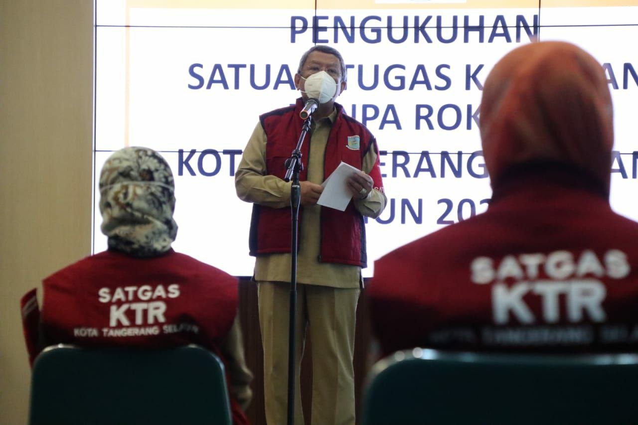 Pemerintah Kota Tangerang Selatan (Tangsel) mengukuhkan anggota Satuan Tugas (Satgas) Kawasan Tanpa Rokok (KTR) di Aula Blandongan, Pusat Pemerintahan Kota Tangsel. Satgas KTR ini dikukuhkan oleh Wakil Walikota Tangsel Benyamin Davnie, Selasa (6/4).