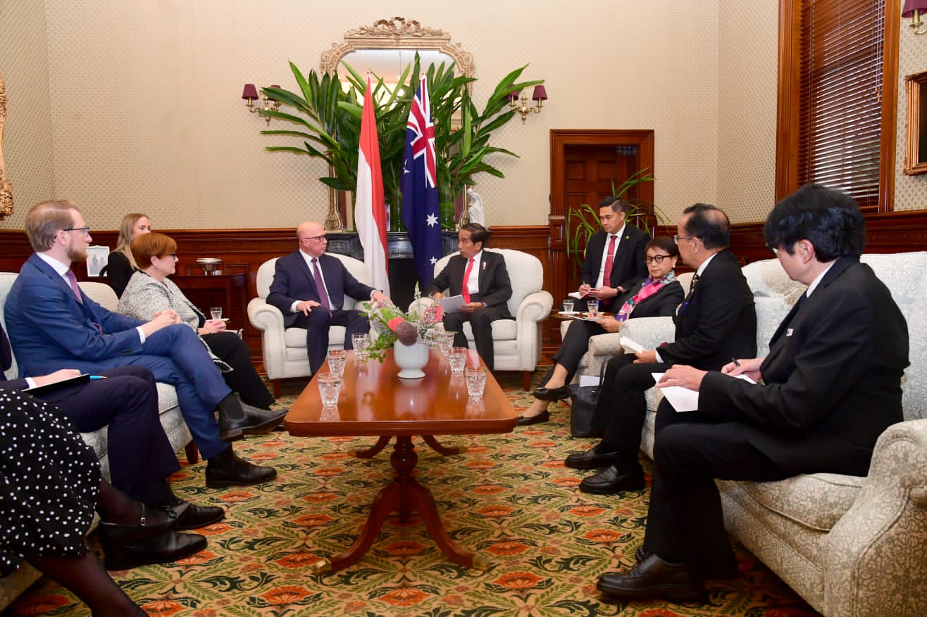 Turut mendampingi Presiden dalam pertemuan adalah Menteri Luar Negeri Retno Marsudi, Menteri Sekretaris Negara Pratikno, dan Duta Besar RI untuk Australia Siswo Pramono.