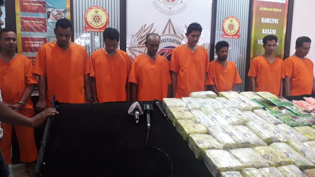 Pertama dirilis yakni, kedua tersangka kakak beradik tersebut yakni RM Alias IY (39) dan AS (38). Keduanya berasal dari Sumatera Utara. Barang bukti saat ini telah disita pihak Kepolisian antara lain, Shabu sebanyak 50 kilogram, 15 ribu butir pil ecstasy dan narkotika jenis H-5 serta empat buah HP berbagai merk.
