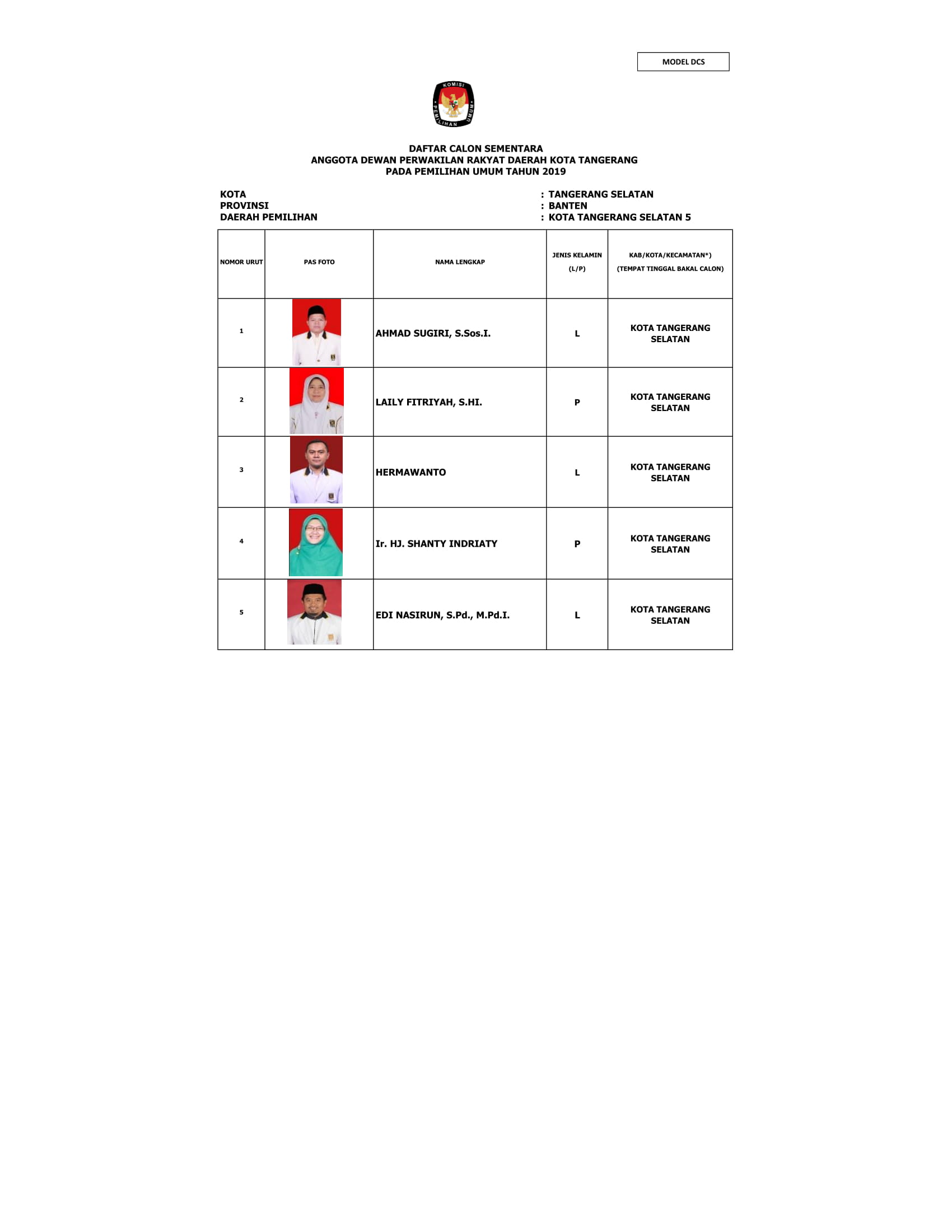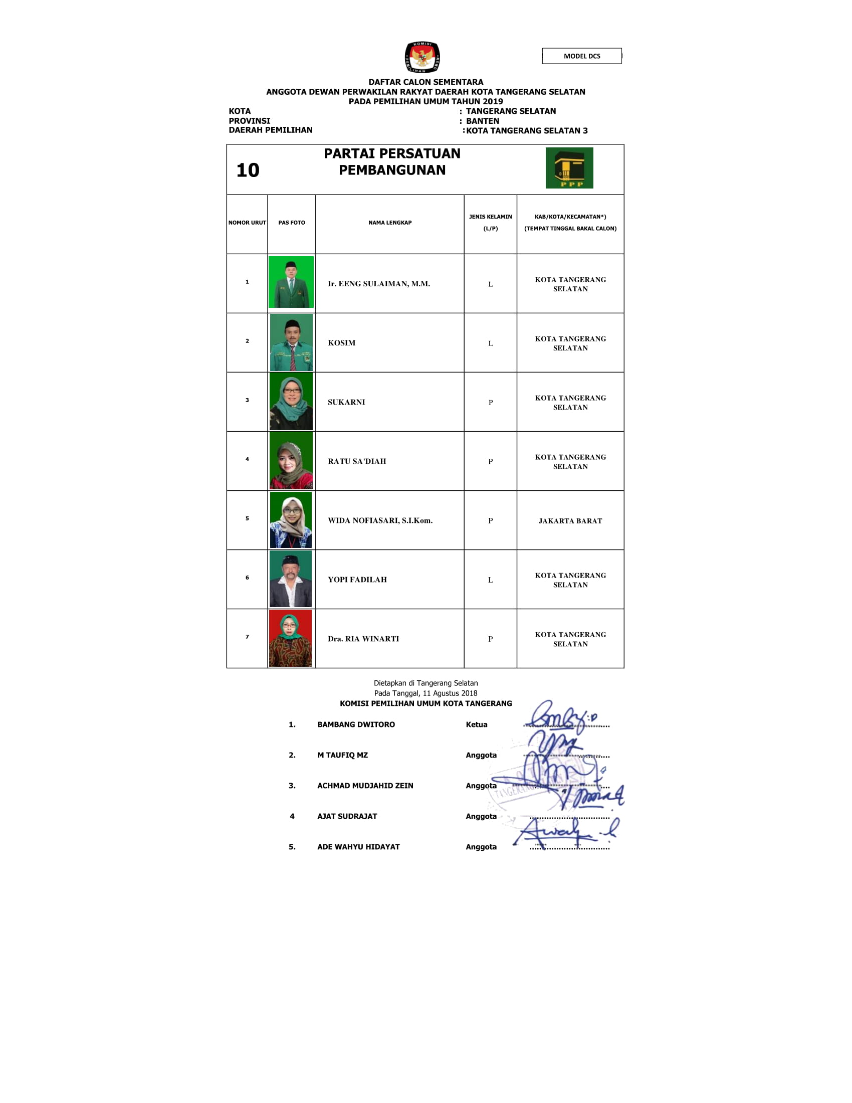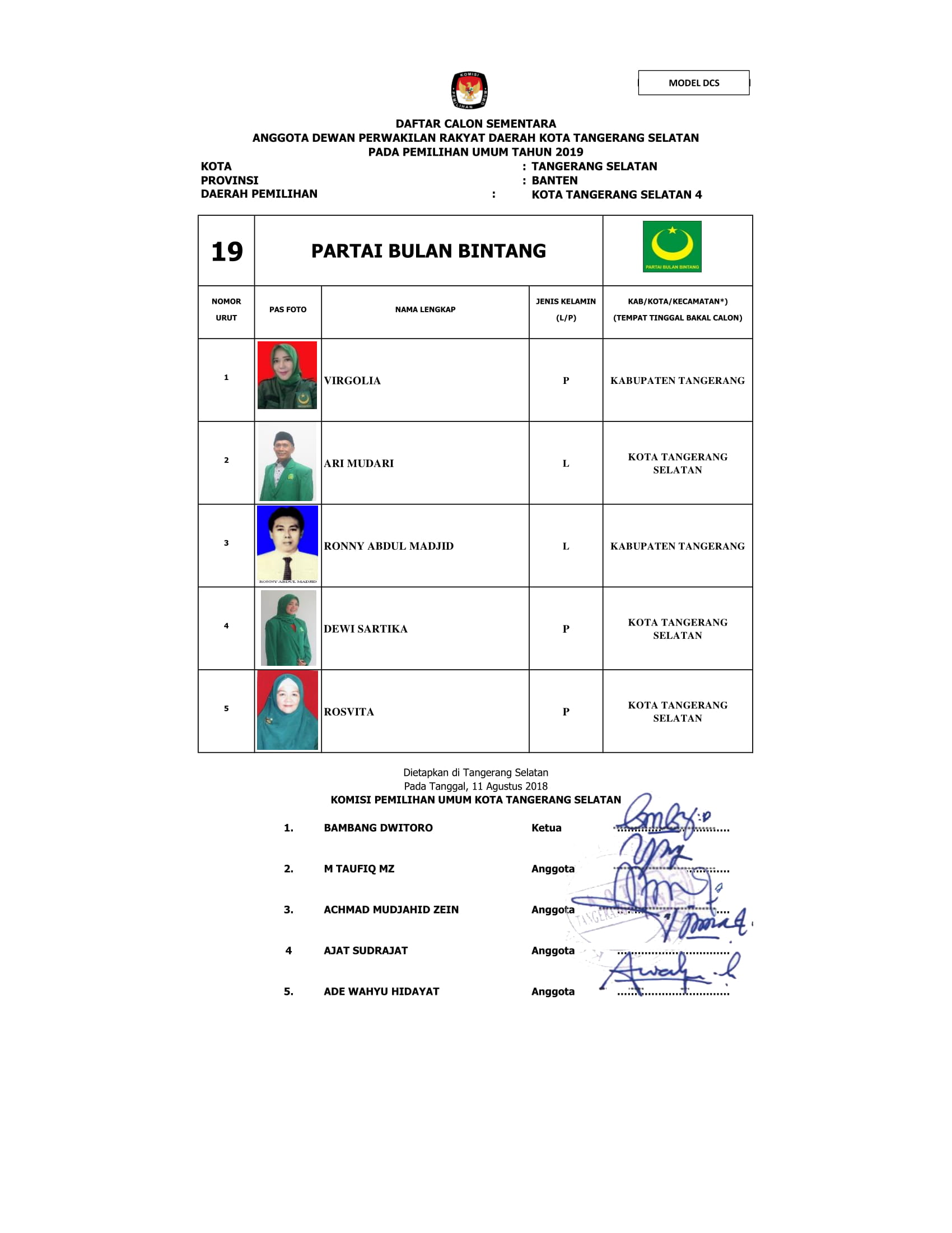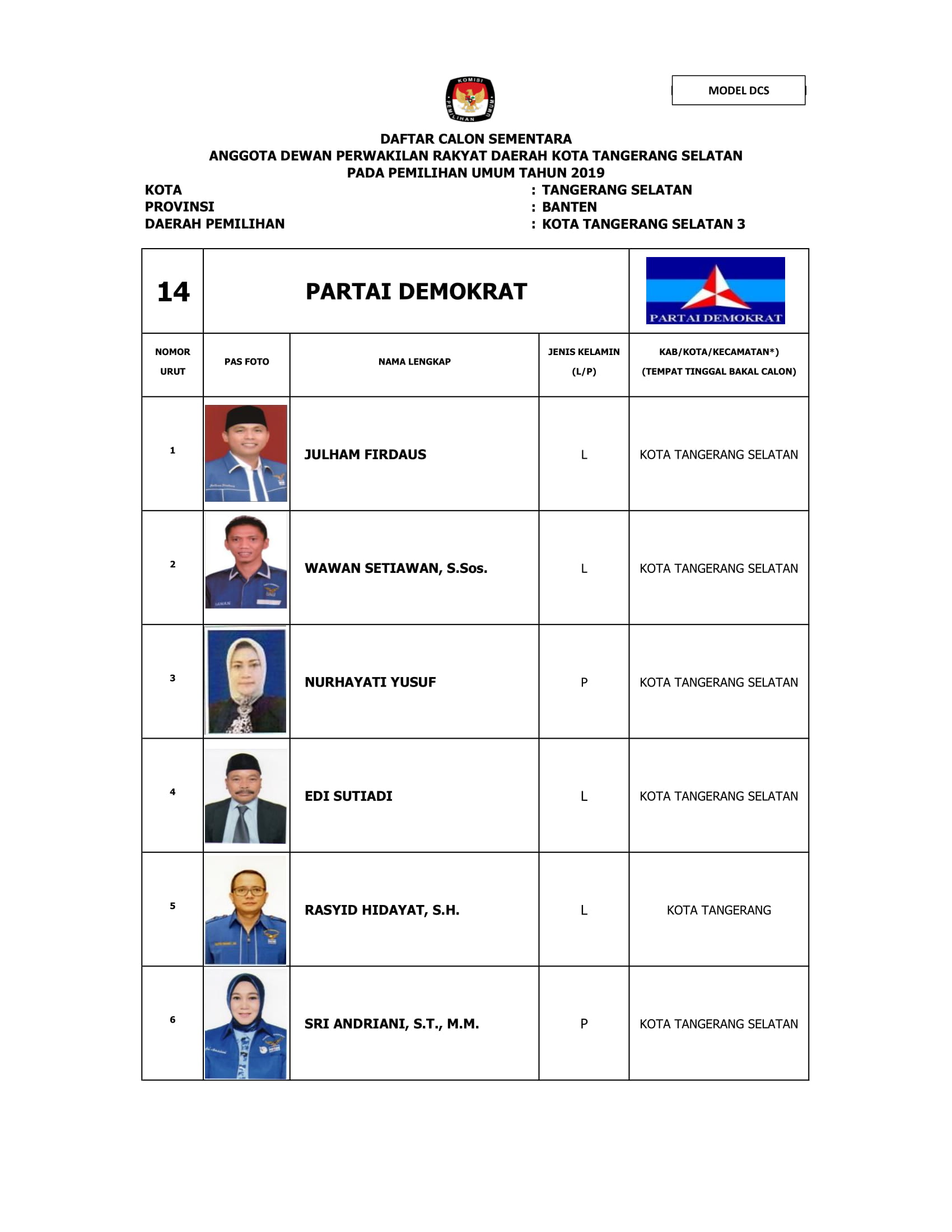Untuk Data DCT Silahkan Klik: Daftar Calon Tetap (DCT) Pemilu 2019 DPRD Kota Tangsel https://kabartangsel.com/daftar-calon-tetap-dct-pemilu-2019-dprd-kota-tangerang-selatan/