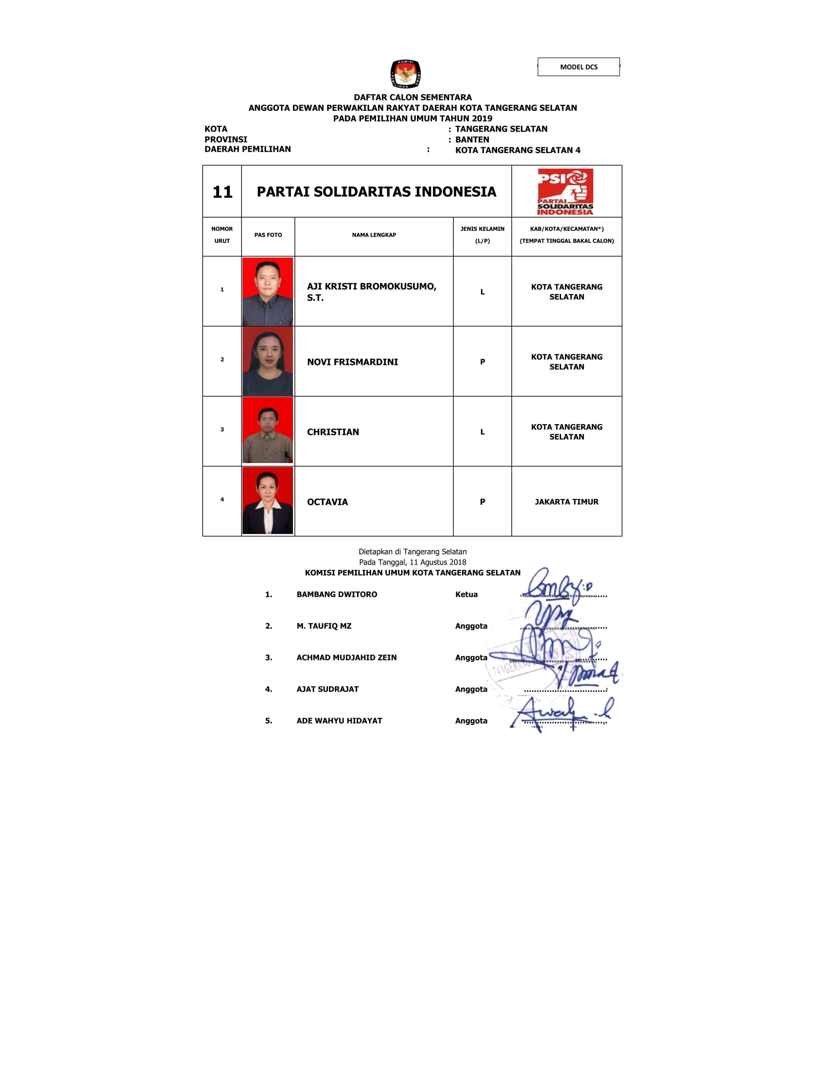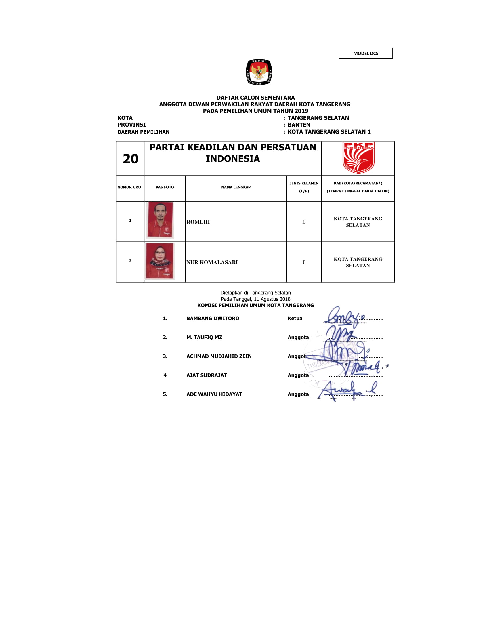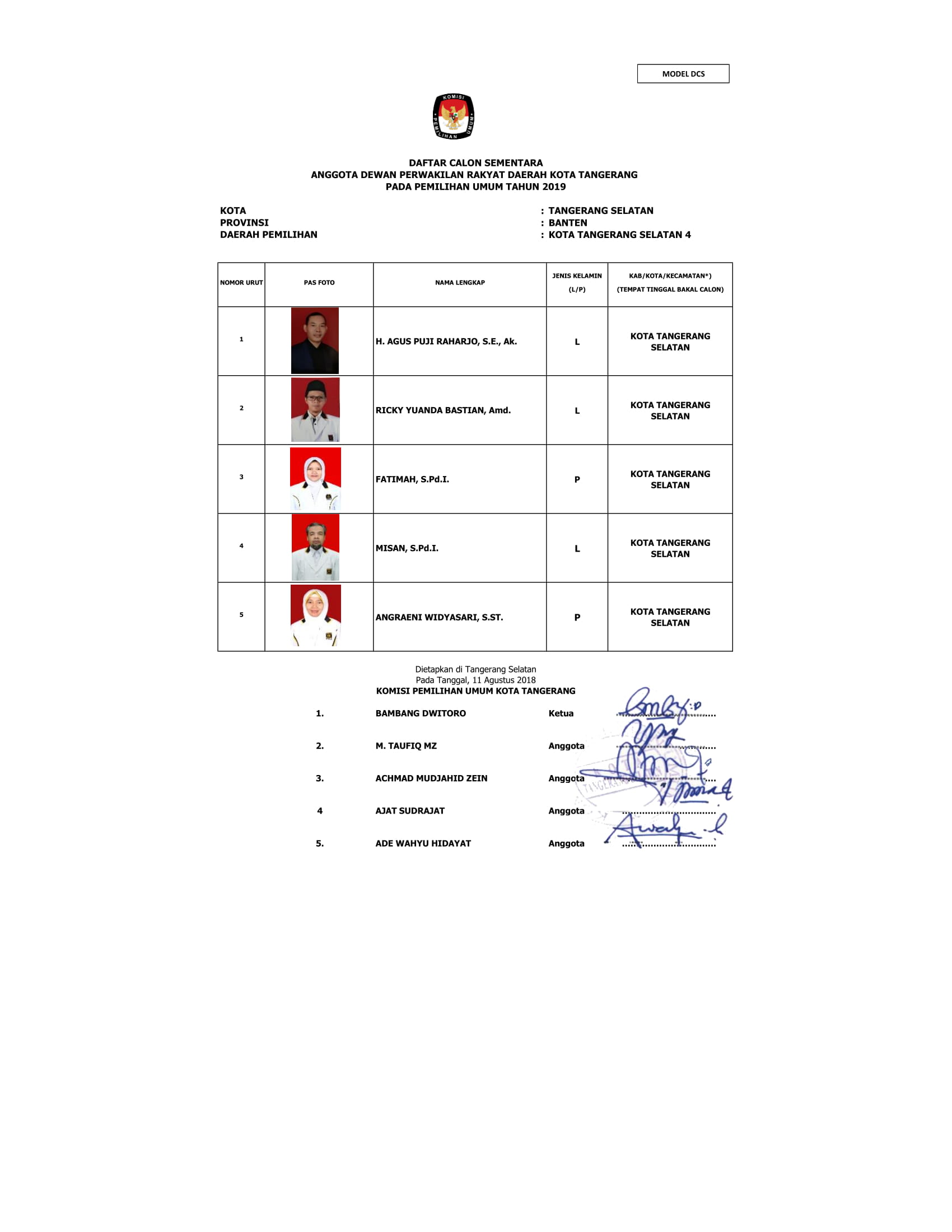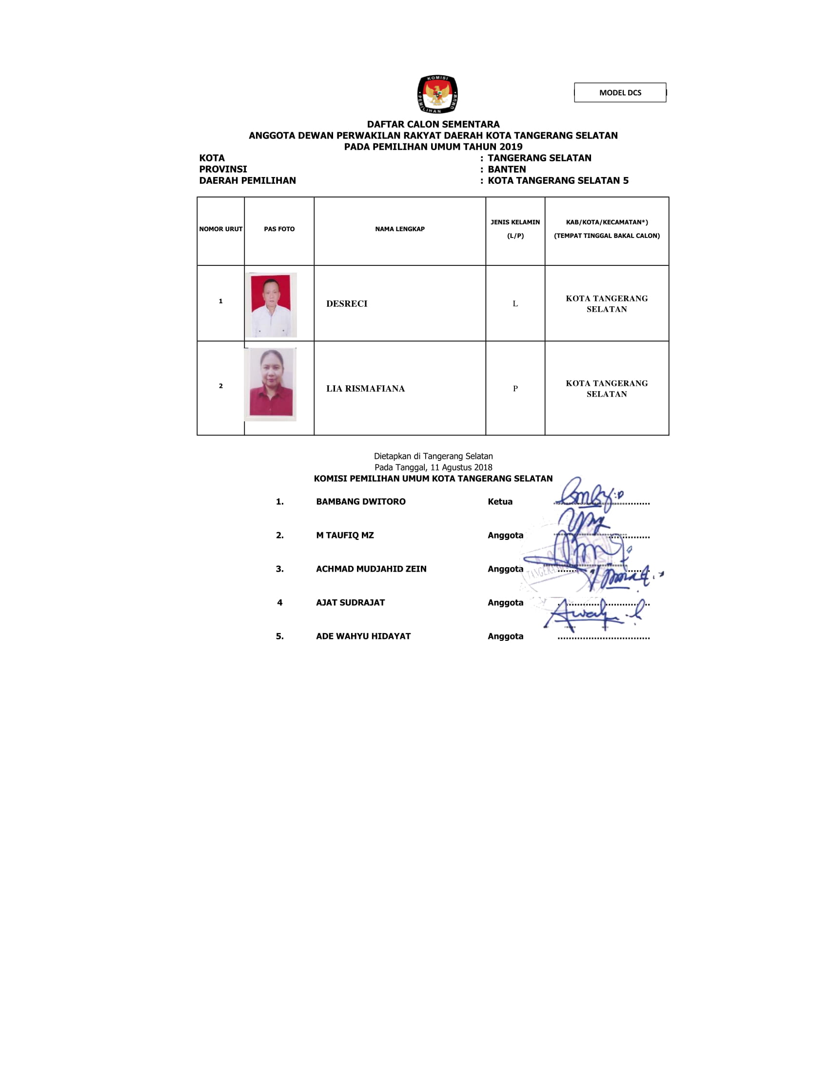 Untuk Data DCT Silahkan Klik: Daftar Calon Tetap (DCT) Pemilu 2019 DPRD Kota Tangsel https://kabartangsel.com/daftar-calon-tetap-dct-pemilu-2019-dprd-kota-tangerang-selatan/