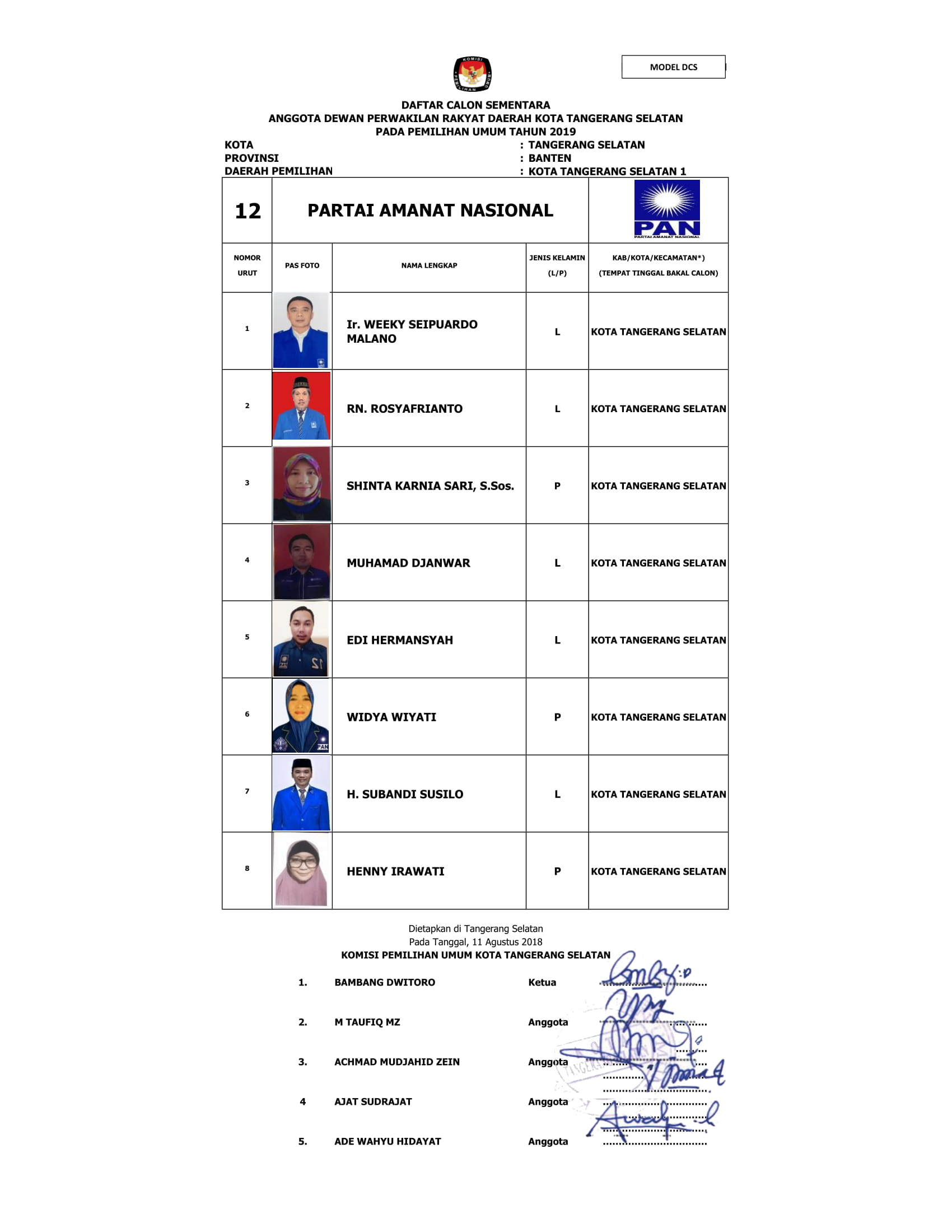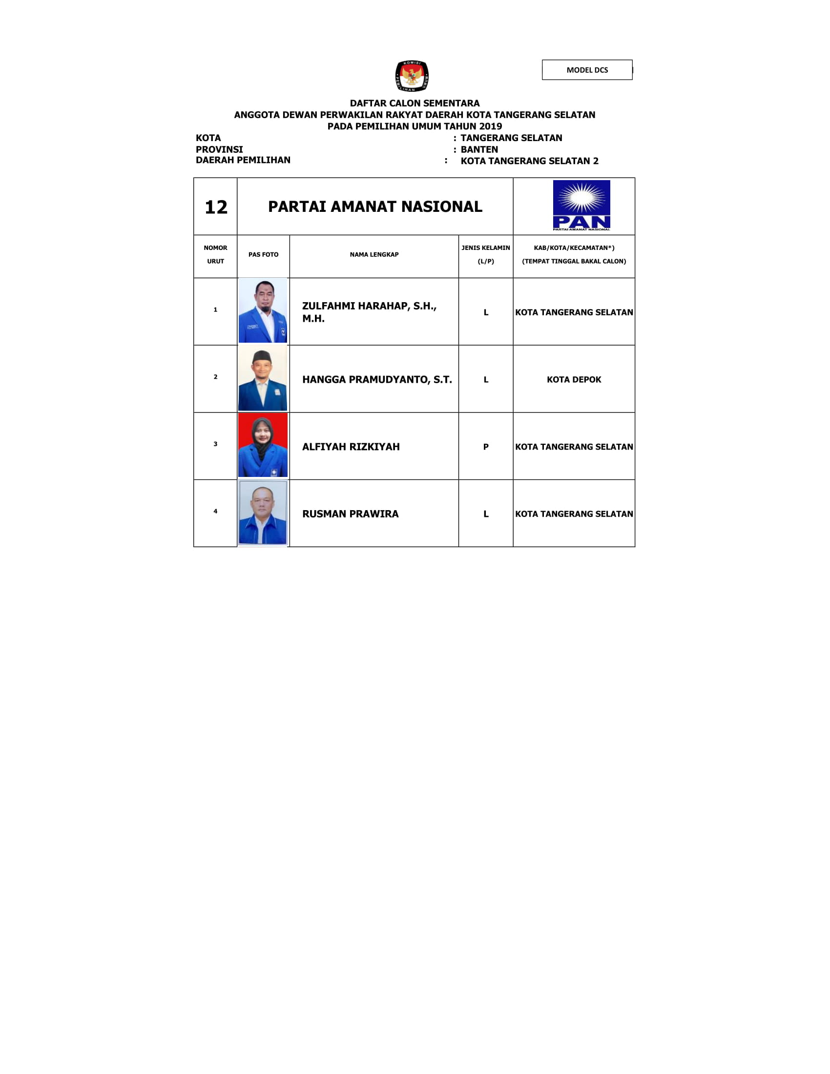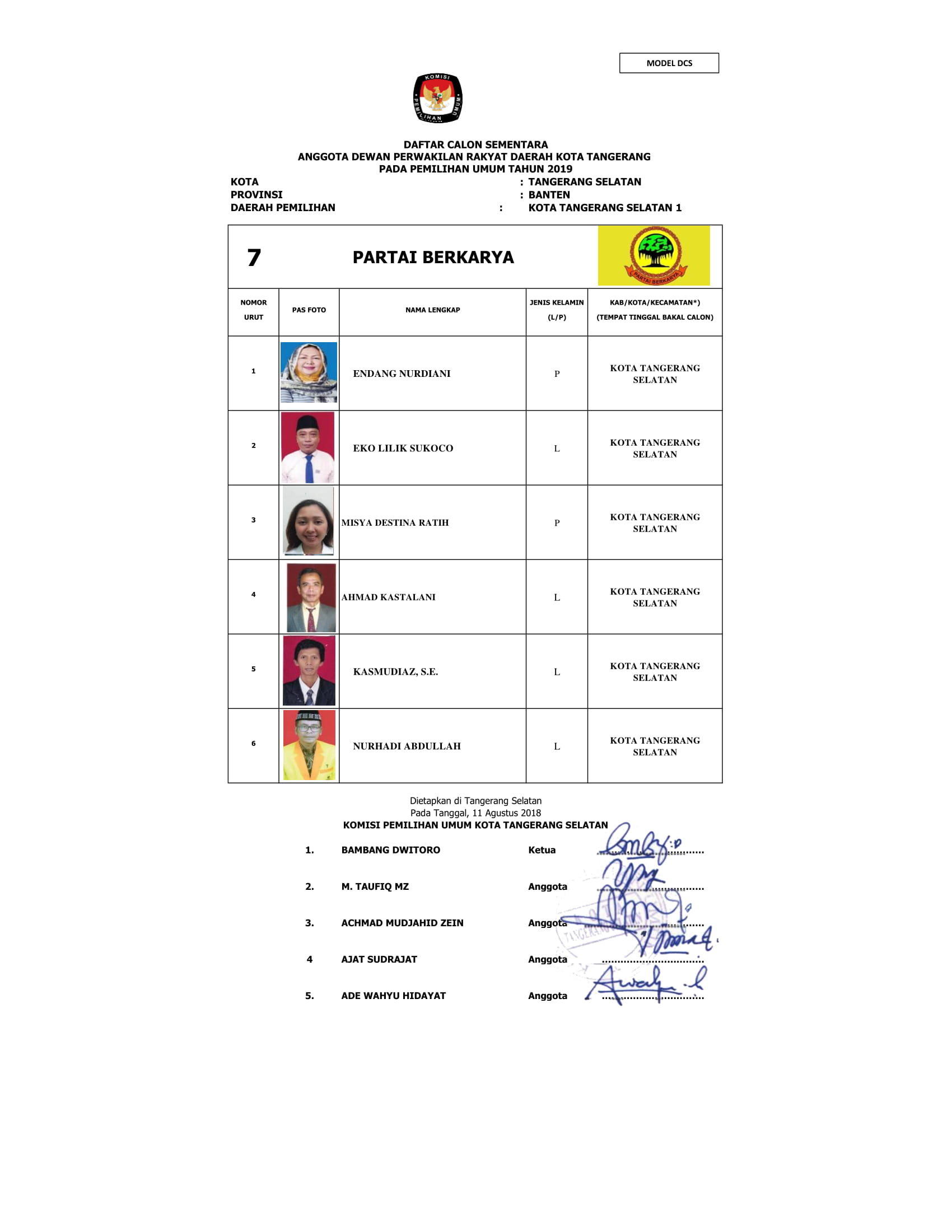 Untuk mengunduh file lampiran DCS Anggota DPRD Kota Tangsel, silahkan klik nomor dan nama partai.