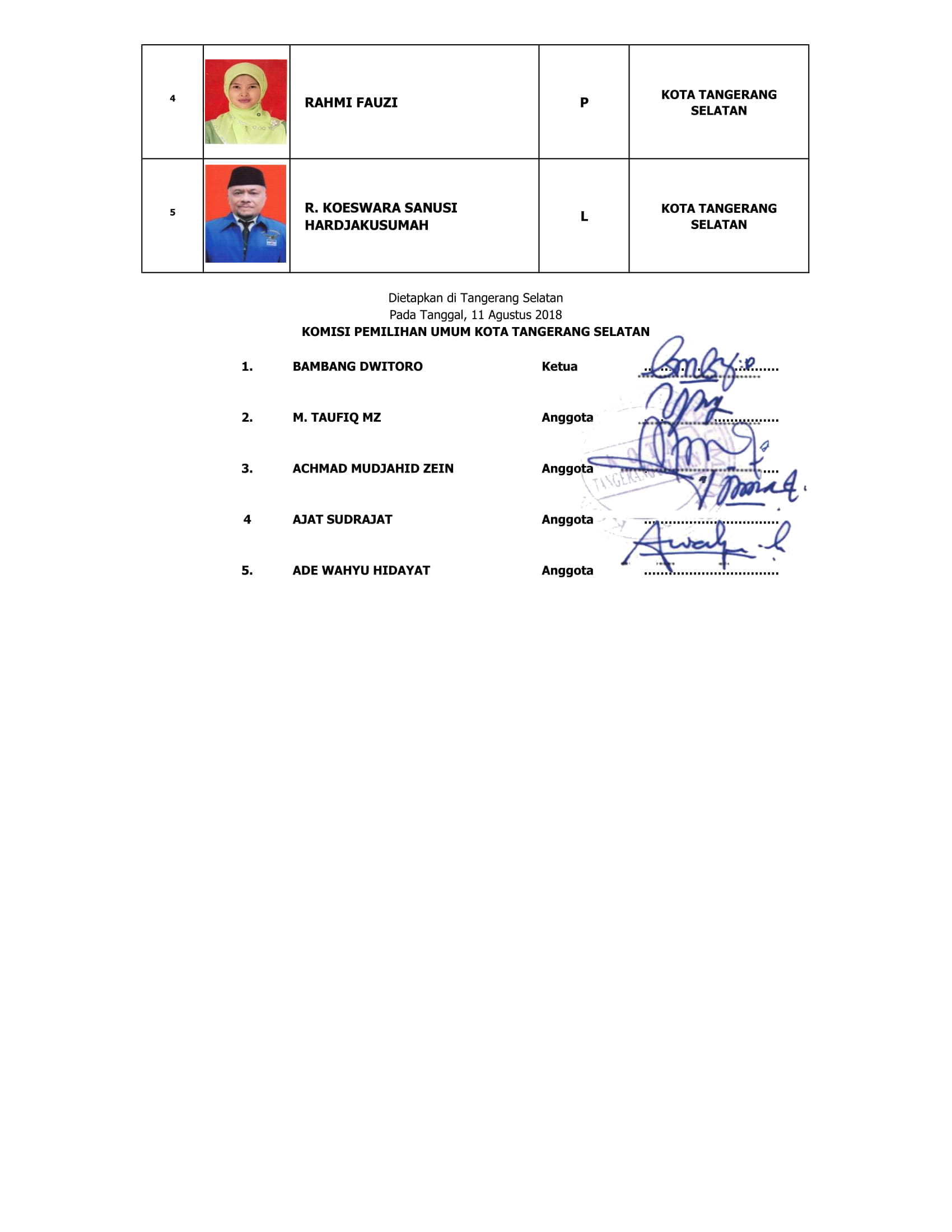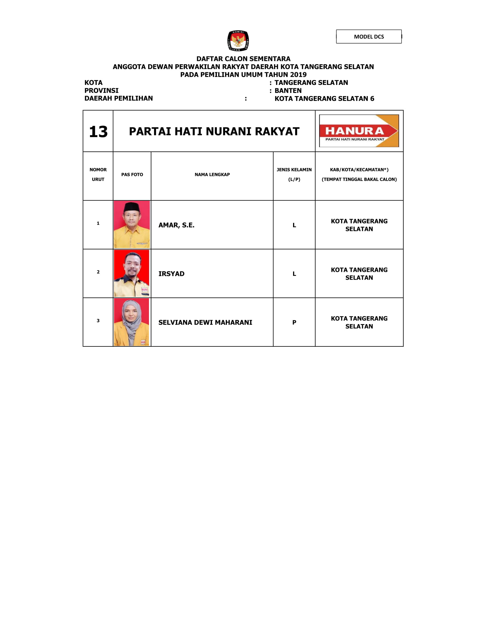 SURAT PENGUMUMAN DCS Anggota DPRD Kota Tangerang Selatan