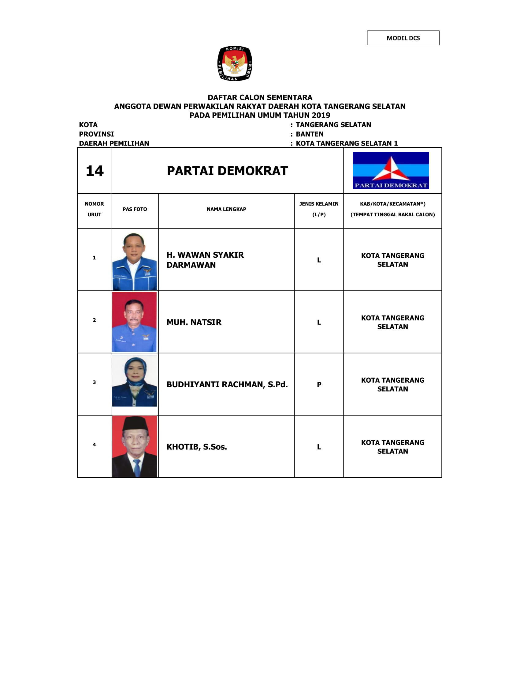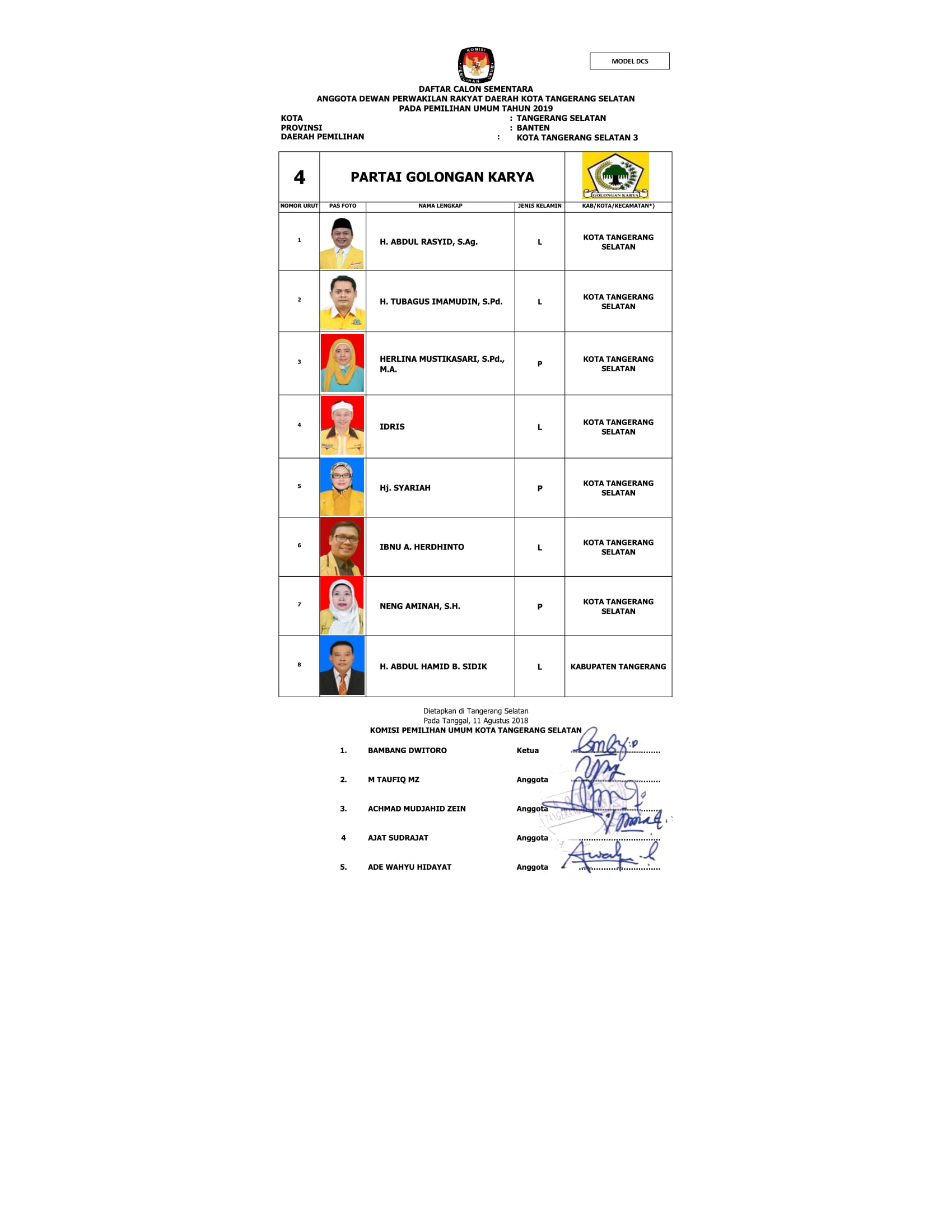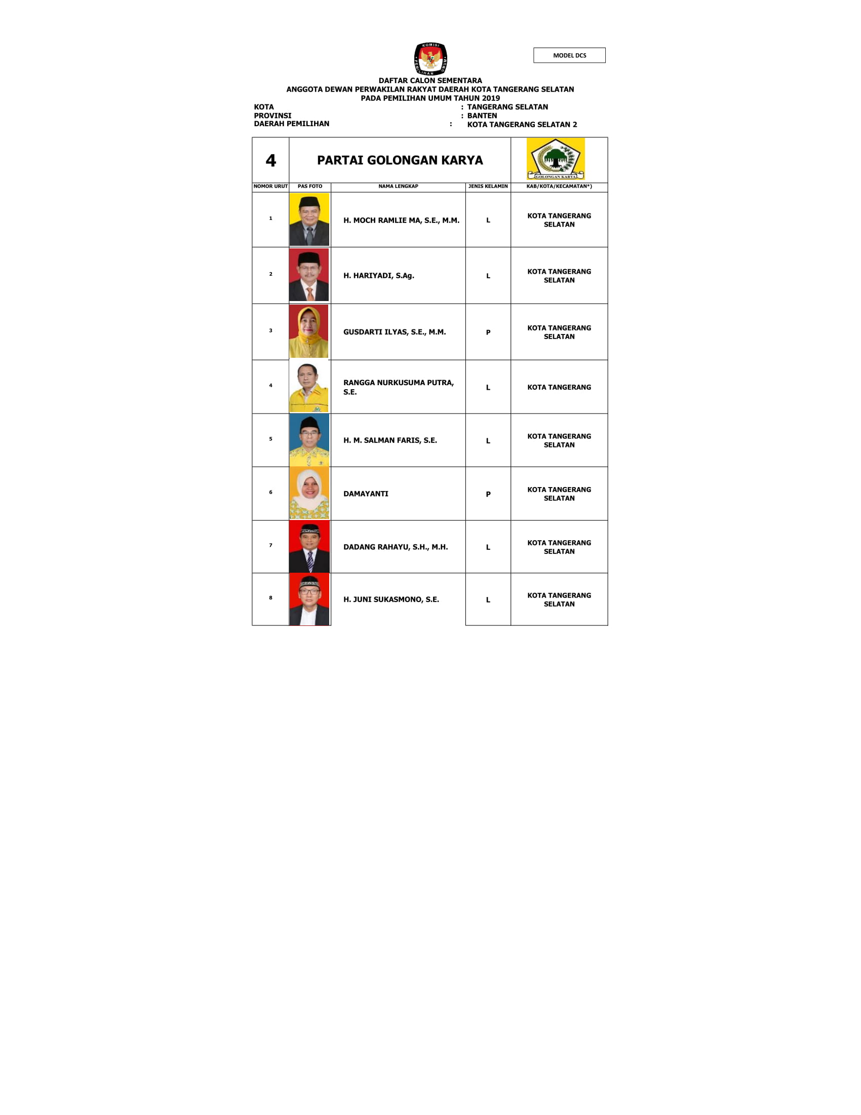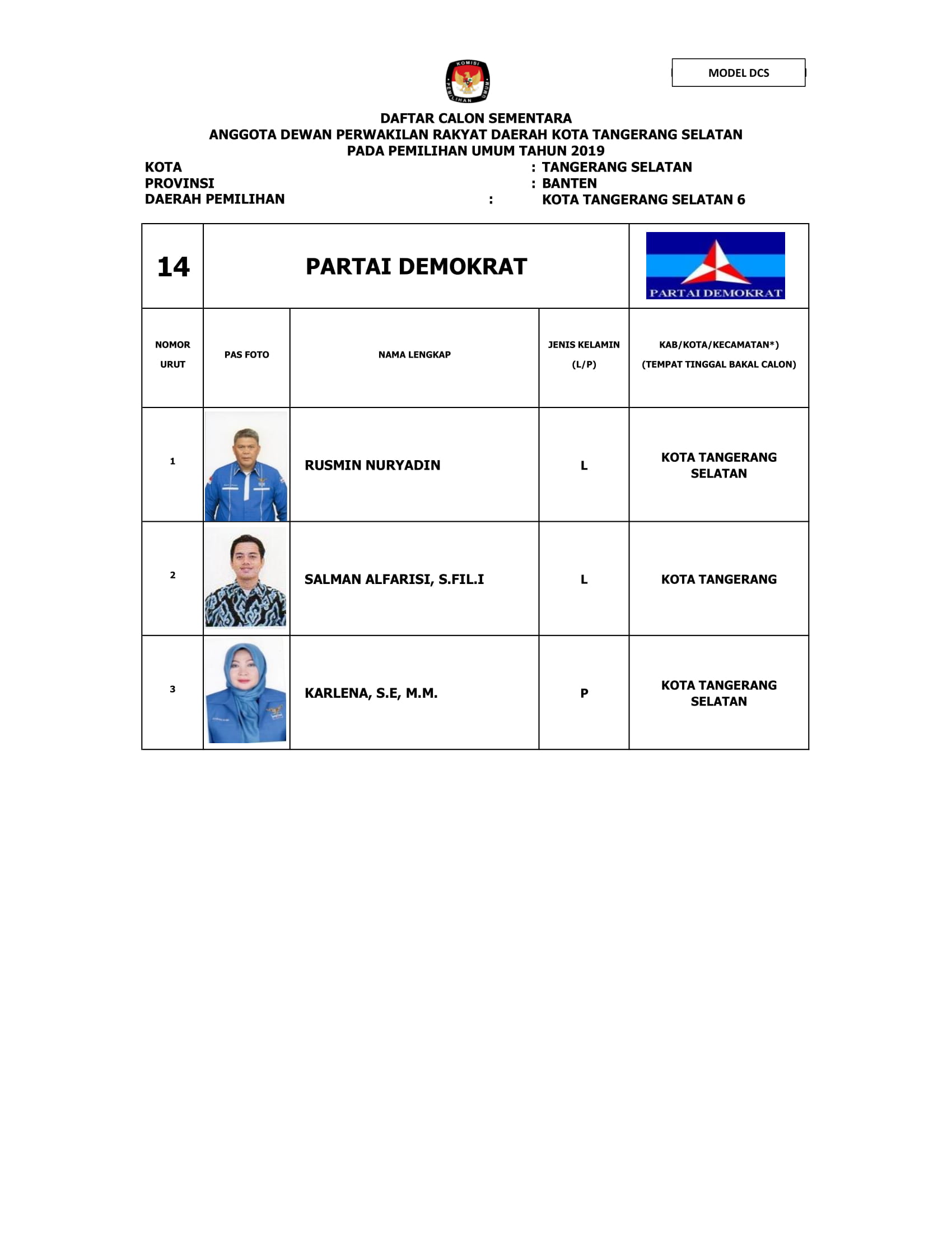 Untuk Data DCT Silahkan Klik: Daftar Calon Tetap (DCT) Pemilu 2019 DPRD Kota Tangsel https://kabartangsel.com/daftar-calon-tetap-dct-pemilu-2019-dprd-kota-tangerang-selatan/
