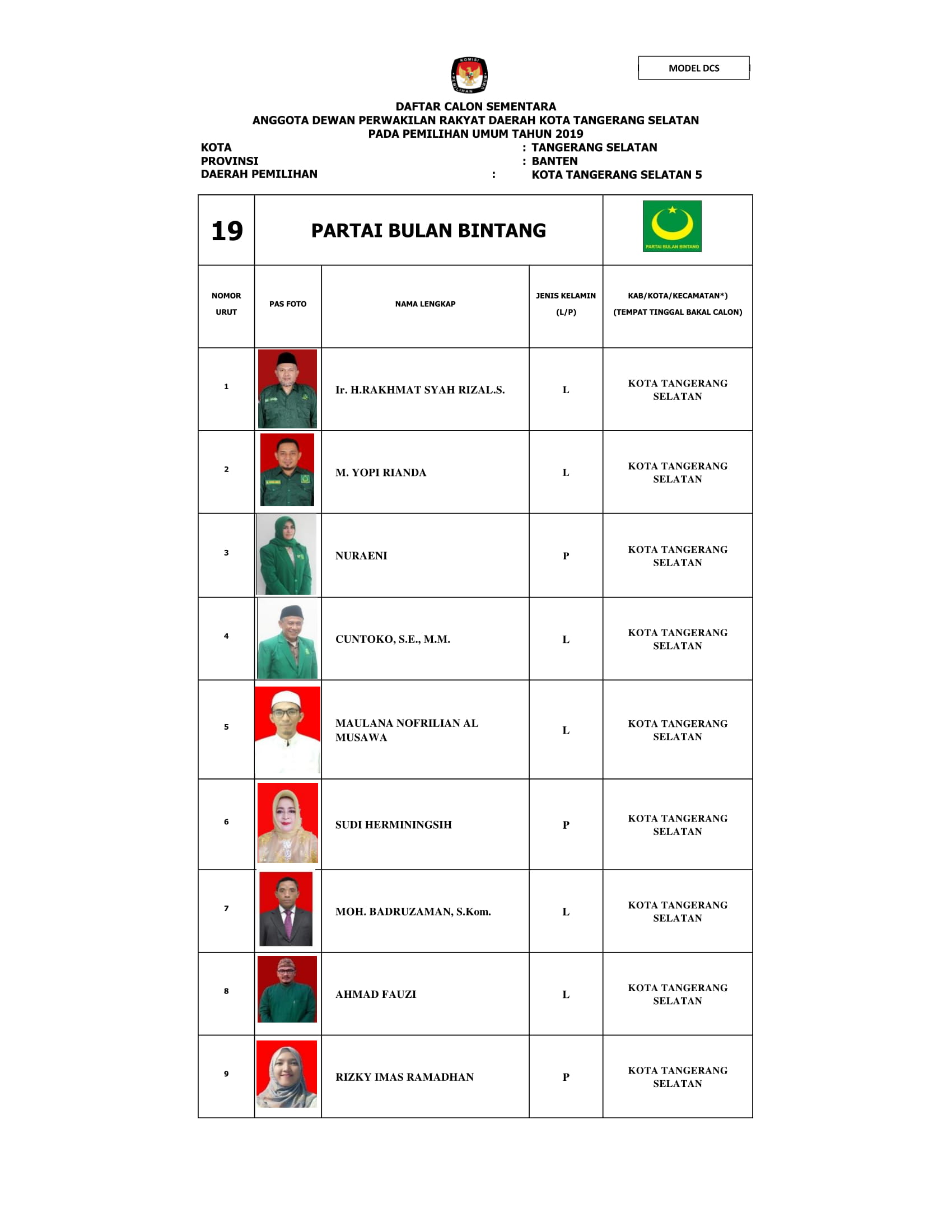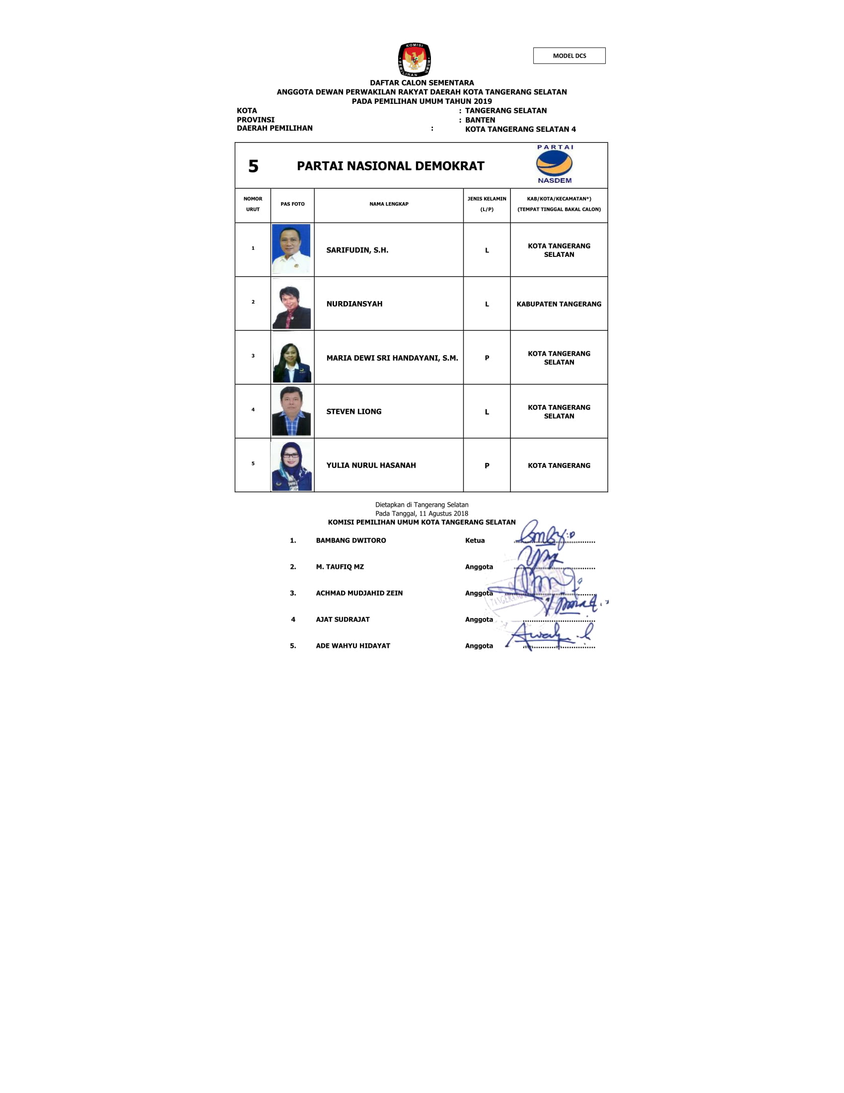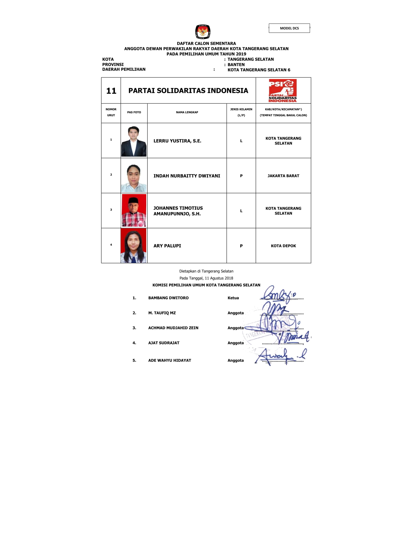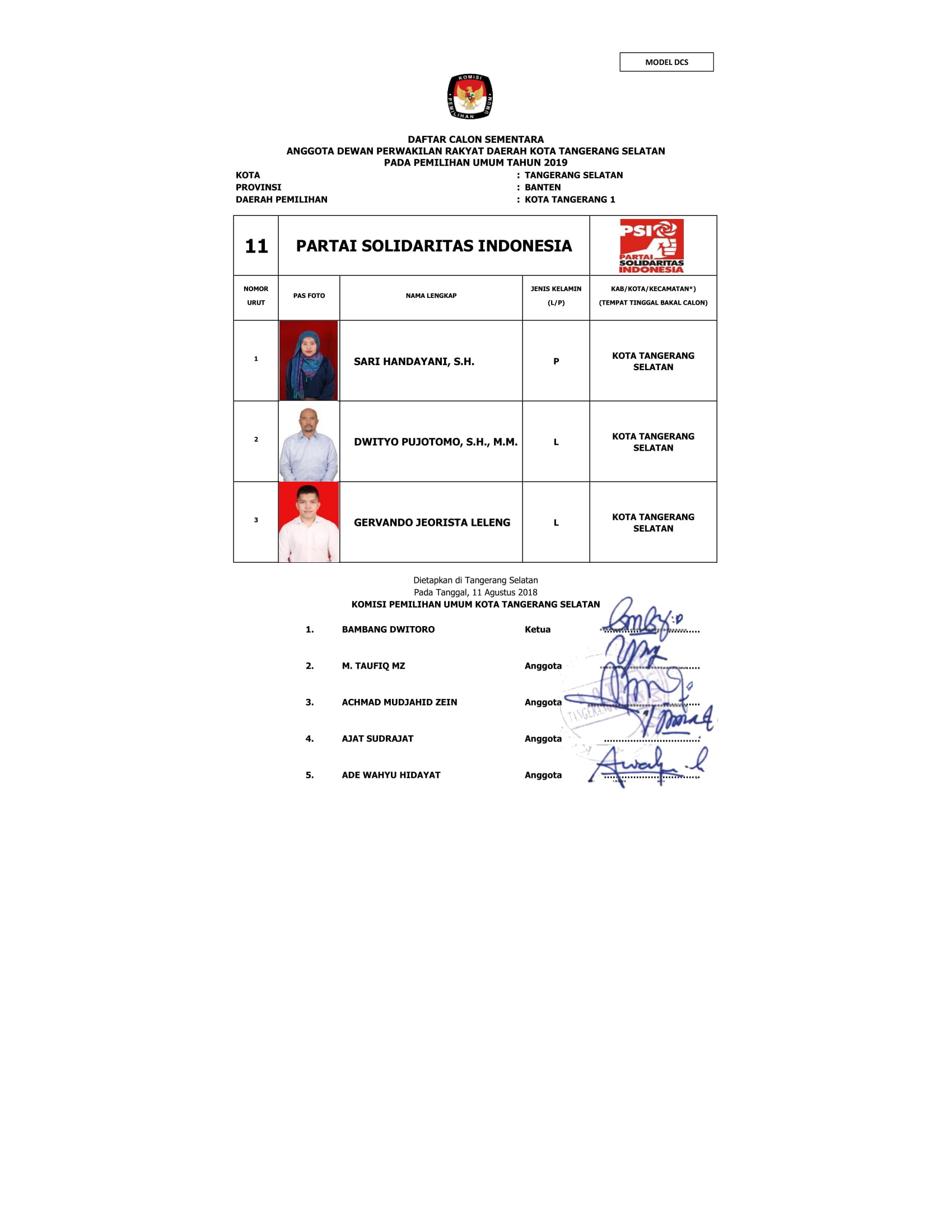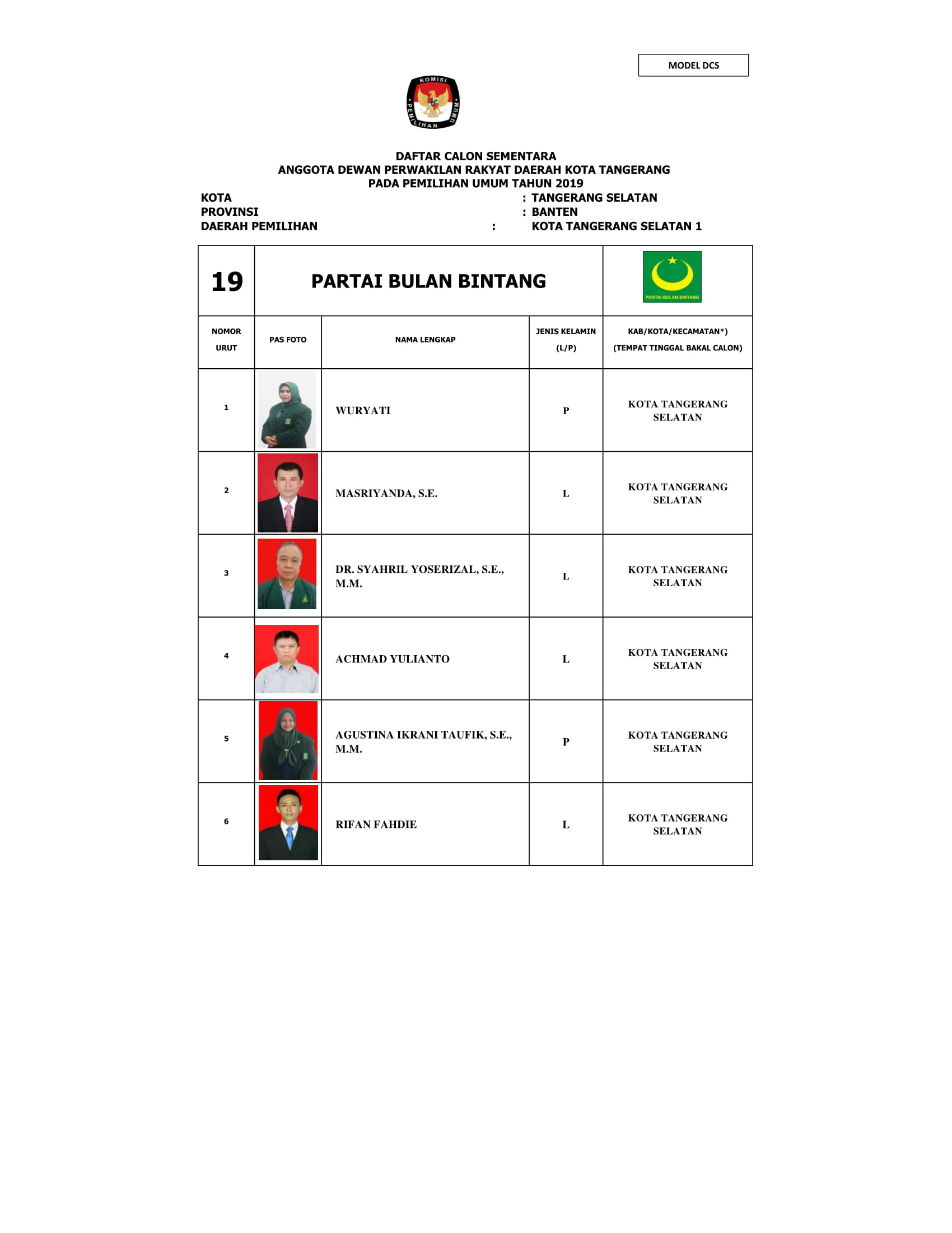 Untuk Data DCT Silahkan Klik: Daftar Calon Tetap (DCT) Pemilu 2019 DPRD Kota Tangsel https://kabartangsel.com/daftar-calon-tetap-dct-pemilu-2019-dprd-kota-tangerang-selatan/