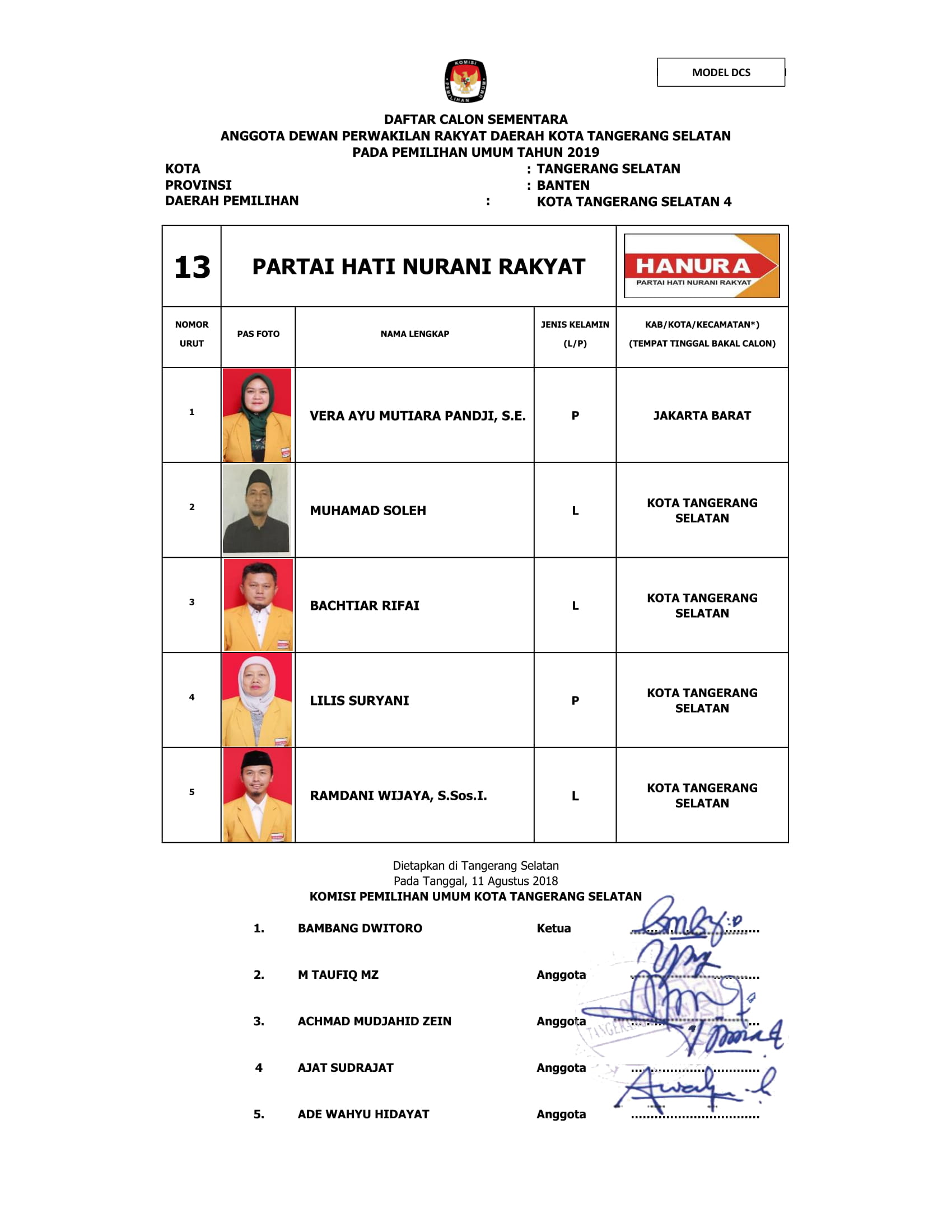 SURAT PENGUMUMAN DCS Anggota DPRD Kota Tangerang Selatan