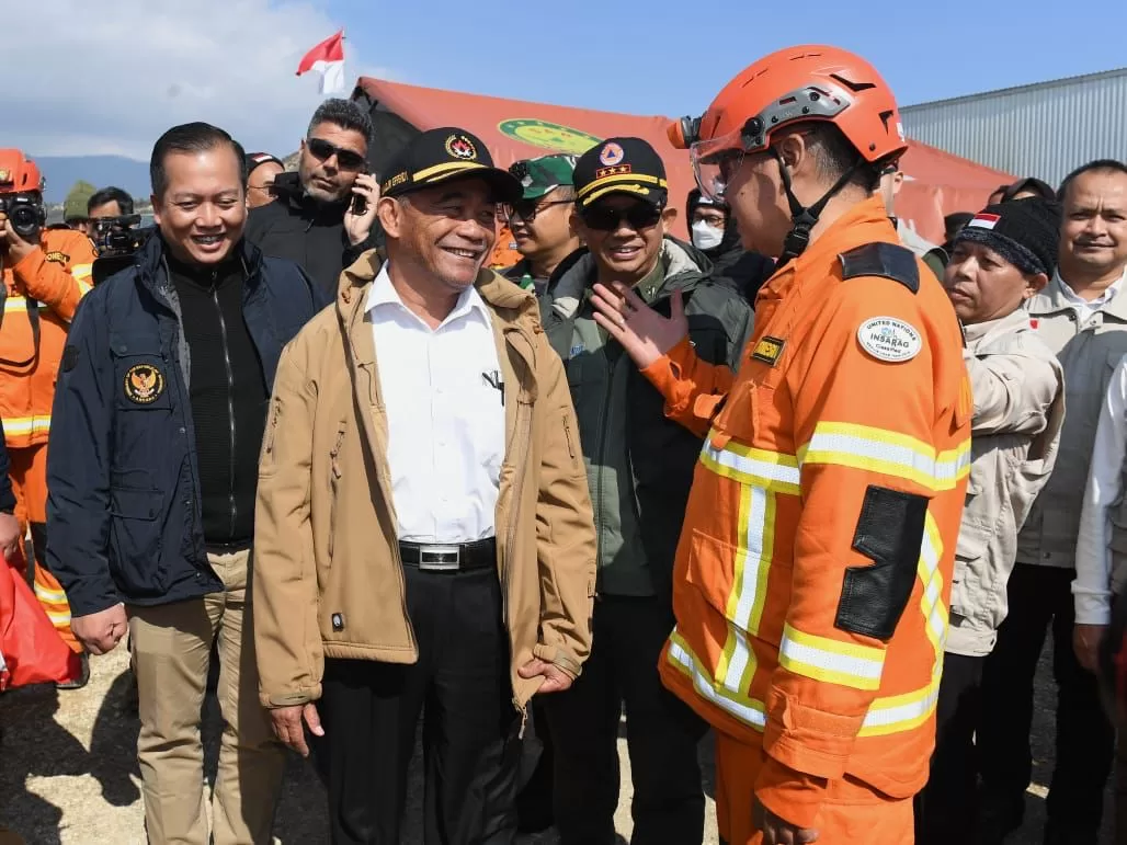 Delegasi Pemerintah Republik Indonesia yang dipimpin oleh Menteri Koordinator Bidang Pembangunan Manusia dan Kebudayaan (Menko PMK) Muhadjir Effendy mengunjungi pusat operasi tim Indonesia Search and Rescue (INASAR) di Kota Antakya, Provinsi Hatay, Turki, pada Rabu (22/02/2023). Rombongan diutus oleh Presiden RI Joko Widodo (Jokowi) untuk menyampaikan bantuan kemanusiaan bagi korban gempa di Turki.