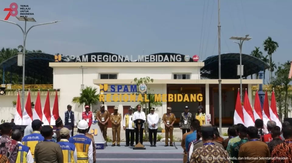 Presiden RI Joko Widodo (Jokowi) meresmikan Sistem Pengelolaan Air Minum (SPAM) Regional Medan-Binjai-Deli Serdang (Mebidang), Jumat (25/08/2023), di Kota Binjai, Sumatera Utara. Dalam sambutannya. Presiden meminta jajaran pemerintah daerah untuk memastikan SPAM Regional Mebidang tersambung dengan sekitar 88 ribu rumah tangga yang ada.