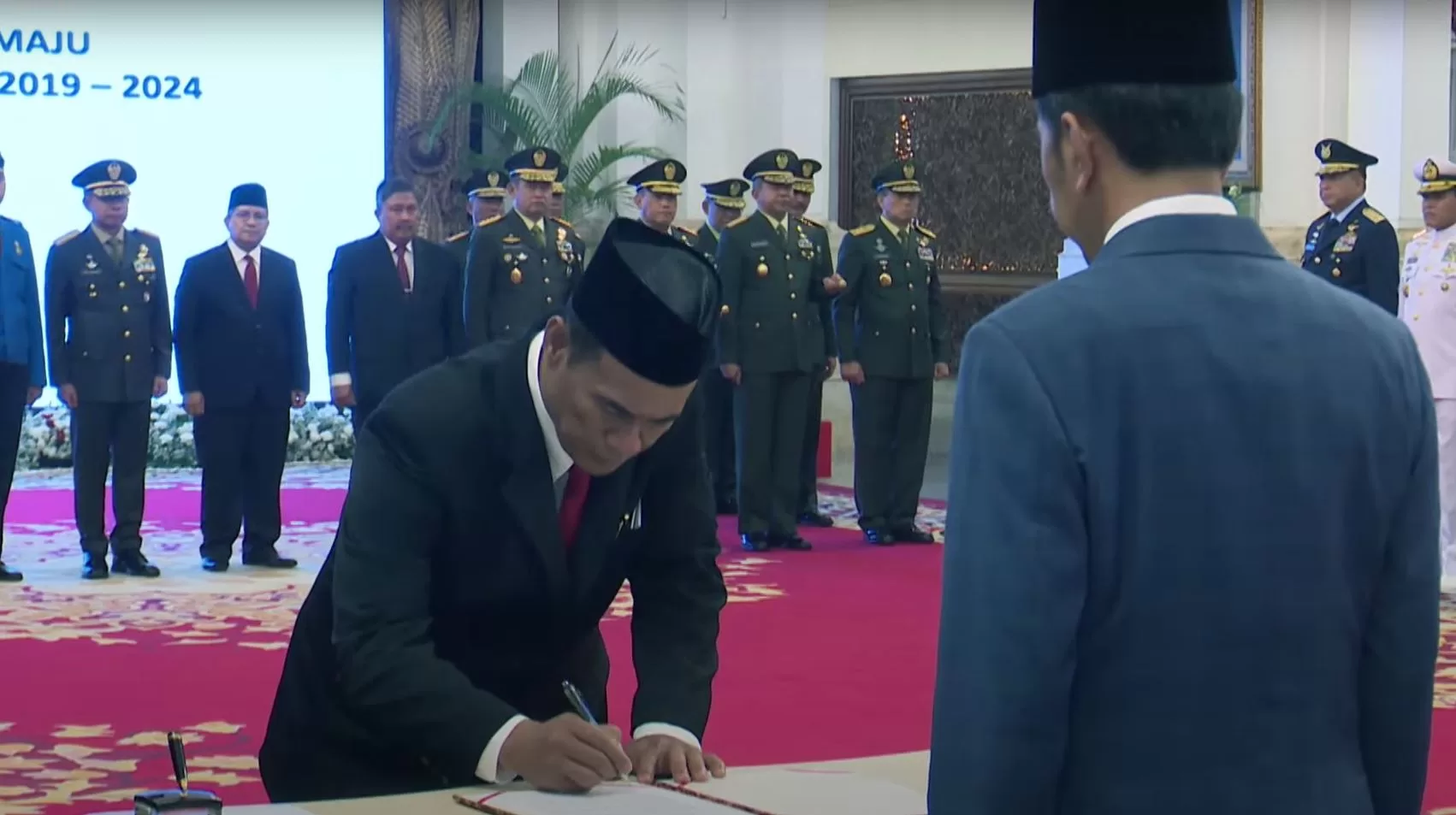Usai pembacaan Keppres yang dilakukan oleh Deputi Bidang Administrasi Aparatur, Kementerian Sekretariat Negara (Kemensetneg), Nani Purwati tersebut, Presiden Joko Widodo kemudian memimpin pembacaan sumpah jabatan yang ditirukan oleh Amran Sulaiman.