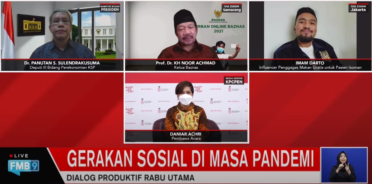 Di kesempatan yang sama, selebritis sekaligus penyintas COVID-19, Imam Darto berkisah mengenai gerakan yang dilakukan di masa pandemi untuk menularkan virus kebaikan bagi orang banyak.