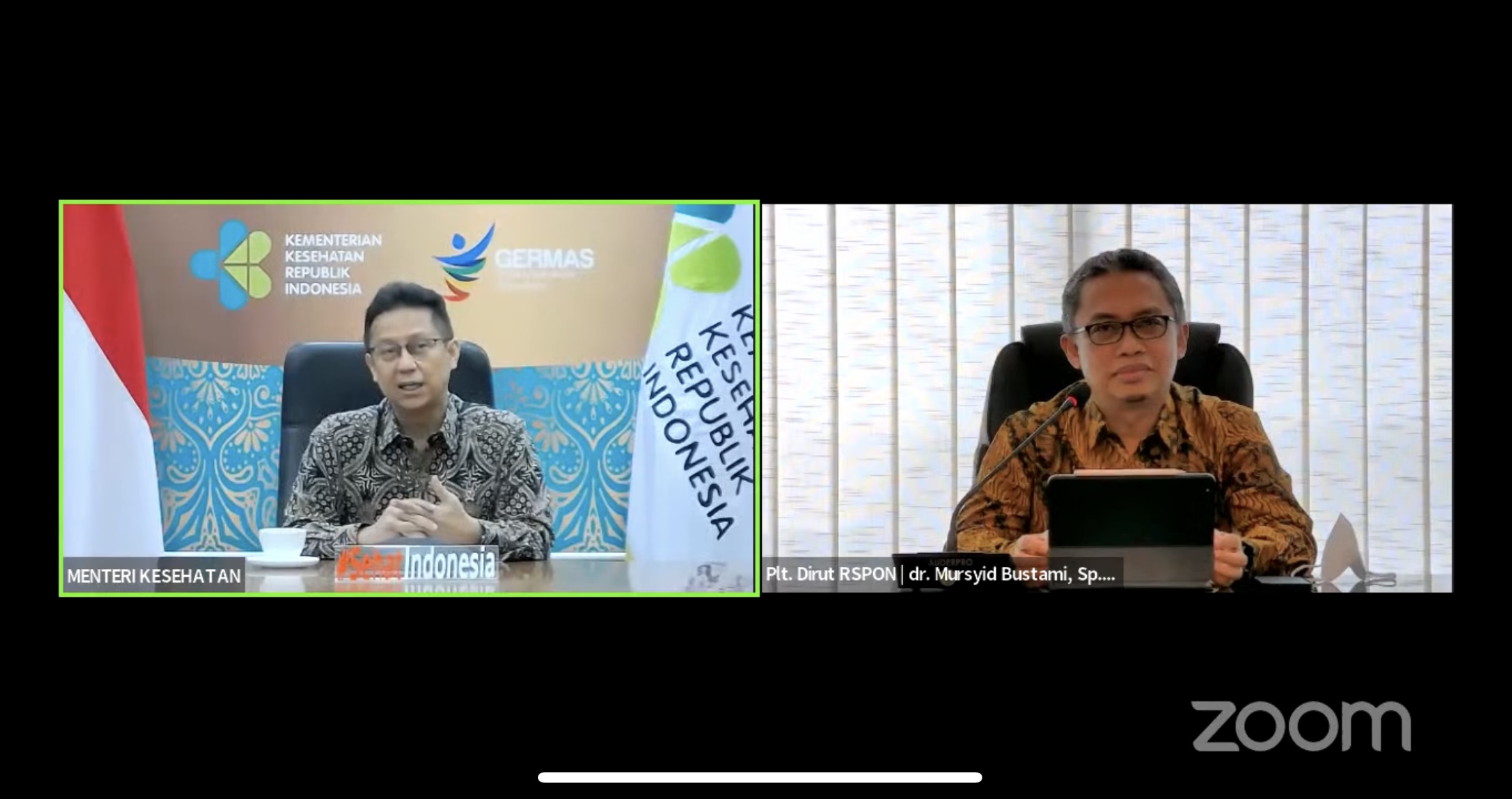 Menteri Kesehatan Budi Gunadi Sadikin hadir secara virtual pada ulang tahun RS Pusat Otak Nasional (RS PON) ke-8 yang diselenggarakan pada Rabu (13/7).