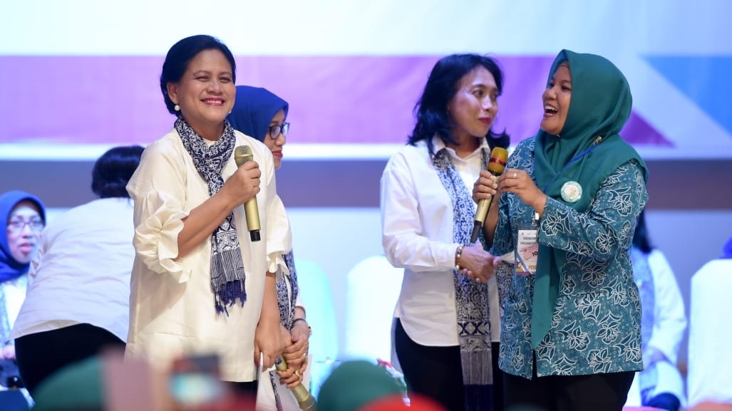 “Oh sudah turun, alhamdulilah. Karena ibu-ibu semua sudah turun ke lapangan,” lanjut Ibu Iriana disambut riuh tepuk tangan peserta.