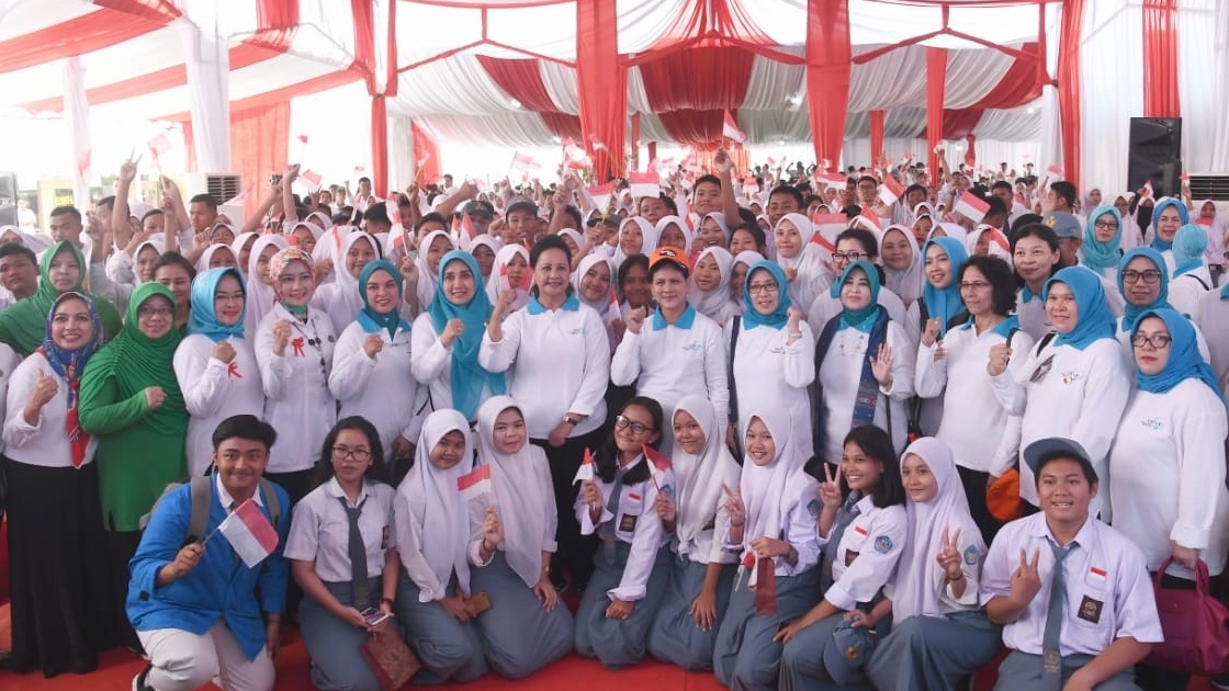 Usai memberikan sambutan, Ibu Iriana kemudian menekan sirene sebagai simbol peresmian pencanangan Gerakan Indonesia Bersih. OASE KK juga menyerahkan bantuan alat olahraga, alat musik, dan bibit tanaman kepada masyarakat Kecamatan Babelan.