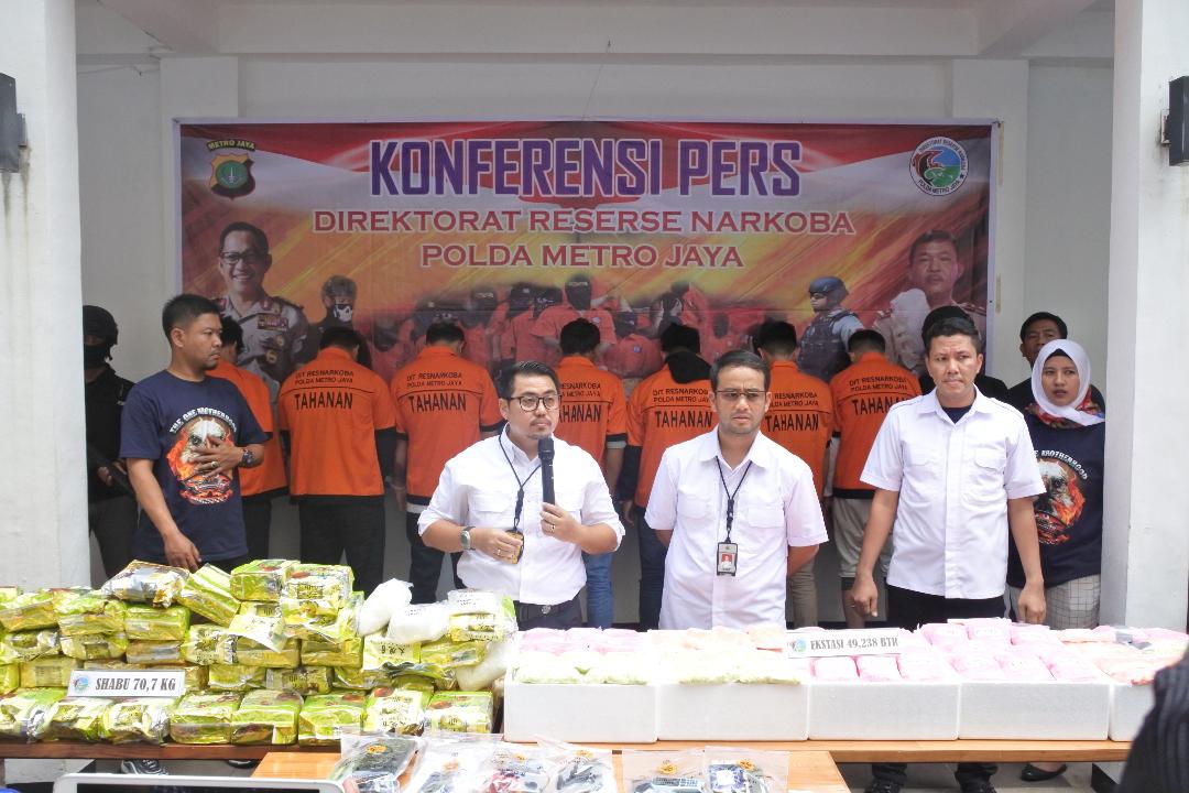 Kabartangsel.com — Tim Narkoba Polda Metro Jaya berhasil menangkap 7 orang pelaku penyeludupan shabu seberat 70,7 kilogram dan 49,238 pil Ekstasi serta 5 kendaraan roda empat, 2 kendaraan roda dua di Season City, Jakarta Barat (17/12).