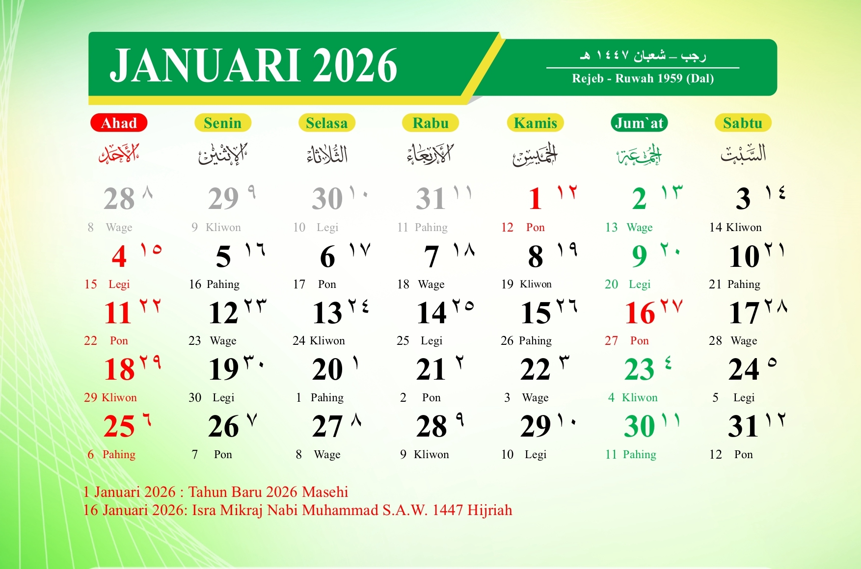 (Bulan Hijriyah: Rajab 1447 H / Bulan Jawa: Rejeb – Ruwah 1959 Dal)