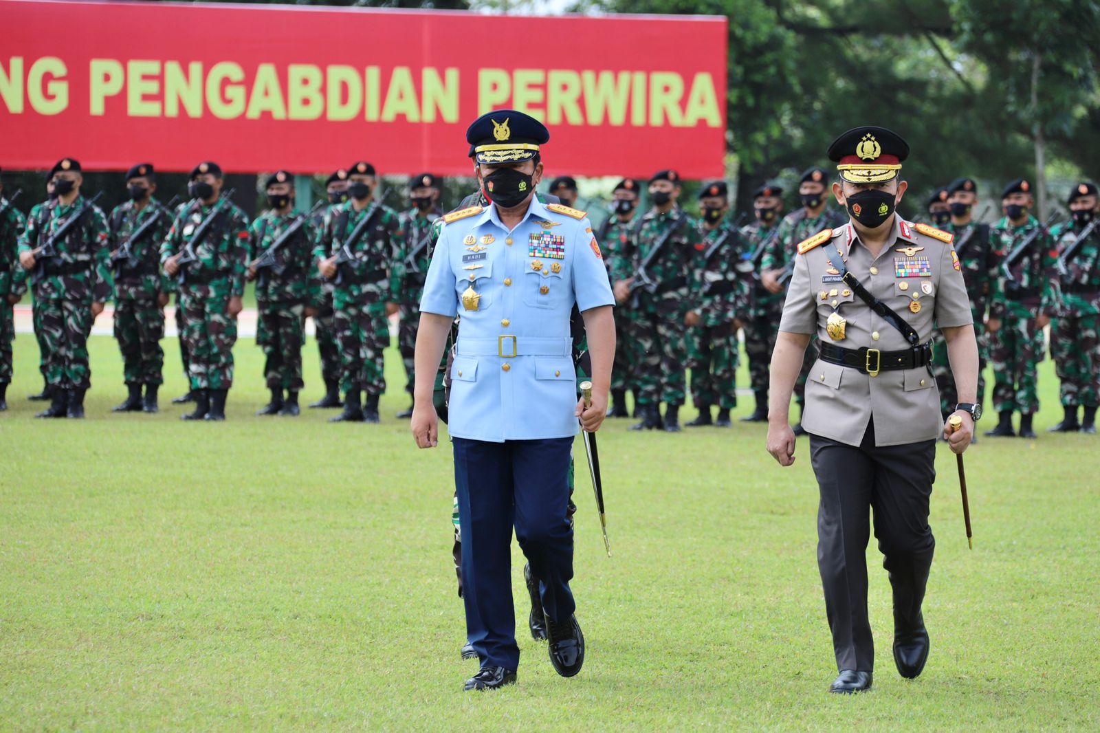 Panglima TNI Marsekal Hadi Tjahjanto dan Kapolri Jenderal Listyo Sigit Prabowo menutup Pendidikan Dasar (Diksar) Integrasi Kemitraan Akademi TNI dan Akpol, di Akademi Militer Magelang, Jawa Tengah, Kamis (28/10/2021).