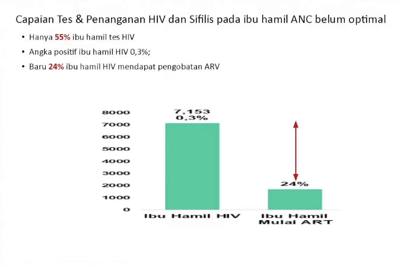 dr. Syahril menjelaskan upaya untuk melakukan skrining pada setiap individu kini menjadi prioritas pemerintah untuk mencapai eliminasi (termasuk pemutusan mata rantai penularan HIV secara vertikal dari ibu ke bayi). Setiap ibu yang terinfeksi 100% harus mendapatkan tatalaksana yang cukup.