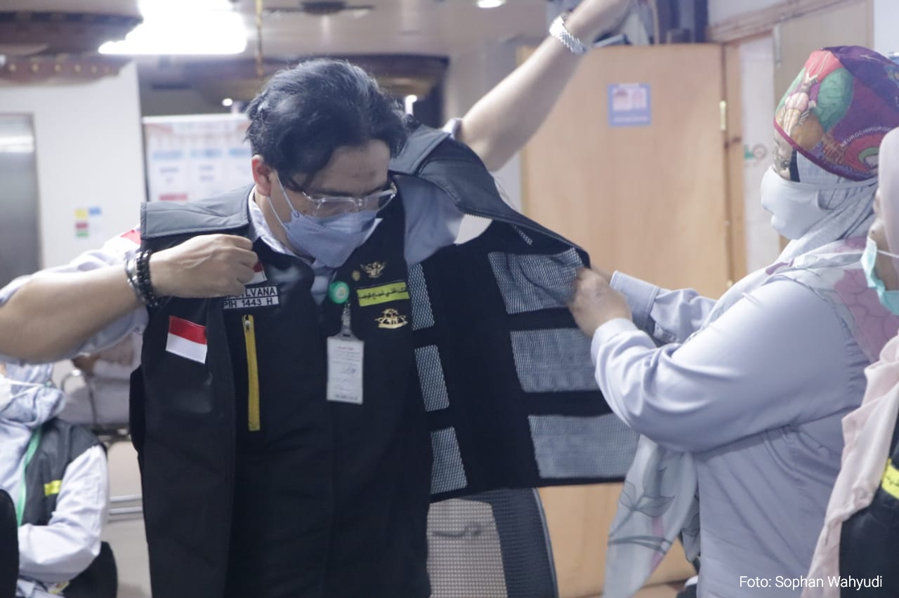 “Rompi penurun suhu ini merupakan inovasi pelayanan kesehatan di musim haji 1443 H, untuk penanganan kasus heat stroke yang mungkin terjadi di musim haji 2022 ini” ujar dr.Budi