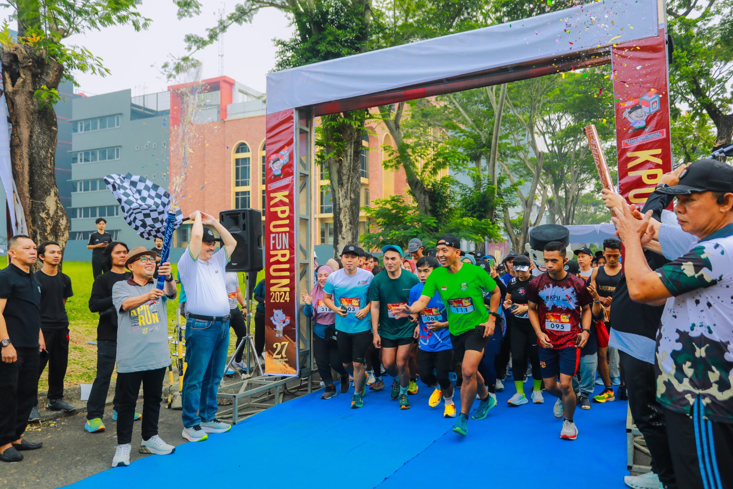 Acara semakin semarak saat kehadiran Penjabat Sementara (Pjs) Wali Kota Tangerang Selatan Tabrani yang melepas peserta KPU Fun Run.