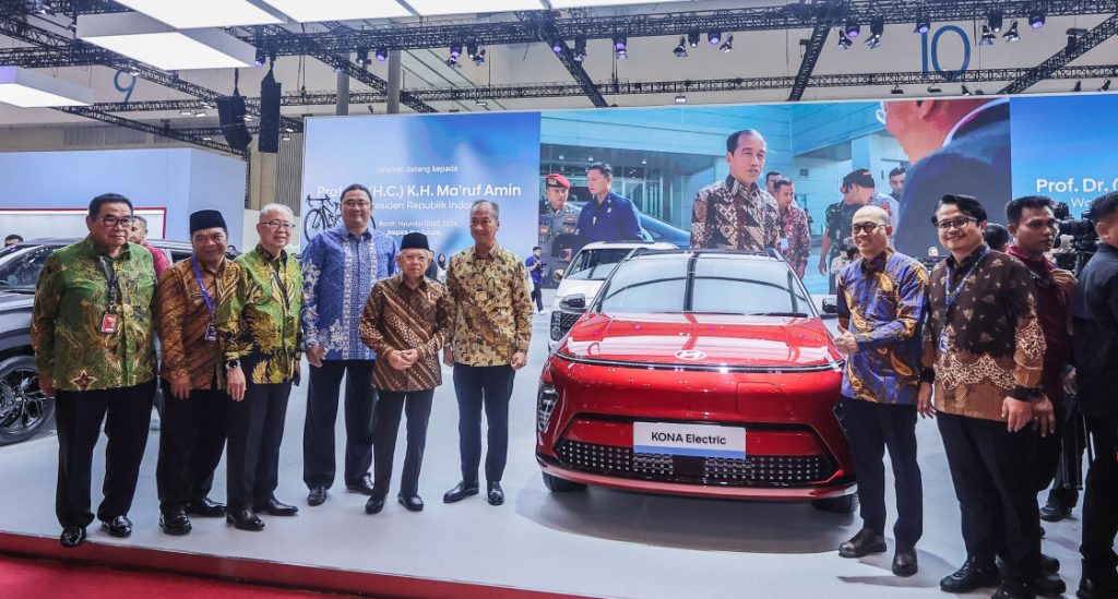 Dalam kunjungannya ke booth Hyundai di GIIAS 2024, Ma’ruf Amin dan Agus Gumiwang menjadi saksi dari keberlanjutan komitmen Hyundai dalam mengembangkan ekosistem kendaraan listrik di Indonesia, serta melihat langsung  produk EV Hyundai yang variatif, salah satunya all-new KONA Electric. Prof. Ma’ruf juga berkesempatan untuk merasakan kenyamanan interior all-new KONA Electric, kendaraan listrik Hyundai yang saat ini memiliki komponen lokal terbesar di Indonesia.