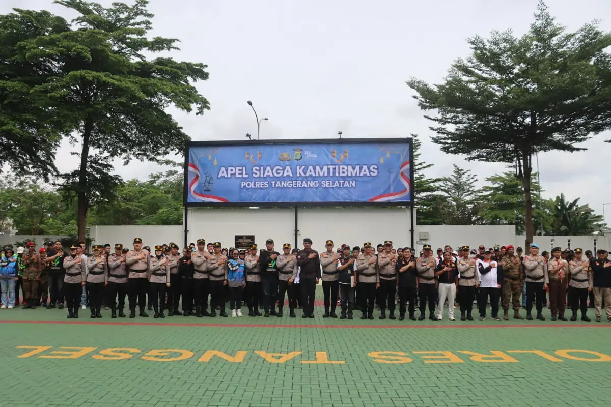 Polres Tangerang Selatan menggelar apel siaga kamtibmas sebagai wujud nyata komitmen bersama dalam menjaga lingkungan dari berbagai potensi ancaman dan gangguan, demi mewujudkan situasi yang aman dan tertib.
