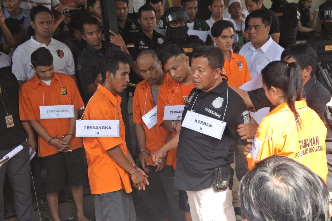 Kabartangsel.com — Rekontruksi pengeroyokan yang terjadi di Ciracas, Jakarta Timur minggu lalu, dilakukan di Polda Metro Jaya, Senin (17/12). Lima tersangka, Agus Priyanrara, Herianto Panjaitan, Iwan Hutapea, Suci Ramdani, dan Depi dihadirkan langsung oleh Polda Metro Jaya.