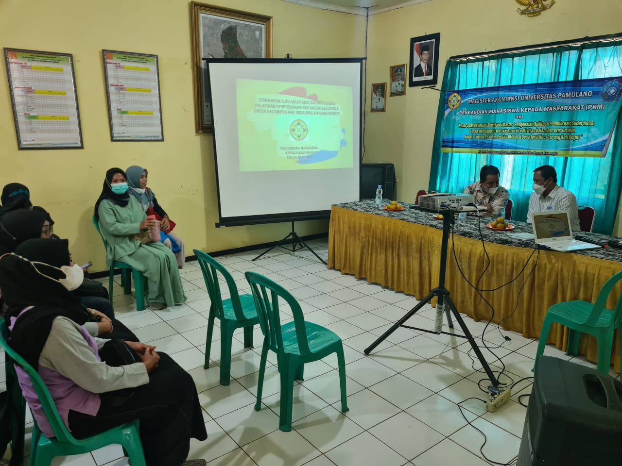 Kegiatan ini digelar pada tanggal 19 juni 2022 di kantor Desa Iwul, Kecamatan Parung, Kabupaten Bogor dengan tema “Membangun Motivasi dan Kreativitas Berwirausaha di Desa Iwul Parung Bogor”. PKM ini dihadiri oleh dosen pembimbing Dr. Suripto.,S.E.,M.AK.,CSRS, Kepala Desa Iwul, kelompok PKK dan para pelaku usaha mandiri.