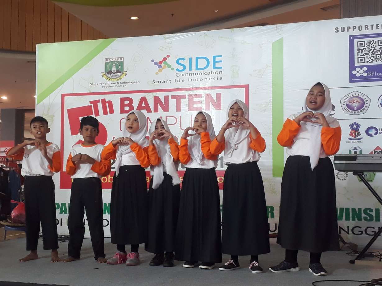 Anak-anak Rumah Amalia sedang menampilkan drama Kisah Cinta Rumah Amalia di acara 5th Banten Campus Expo 2019 di Mall Teras Kota, BSD Tangsel, Senin (25/3).(Andi Mardana)