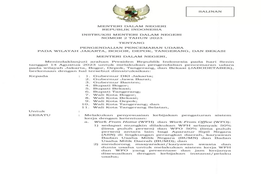 Dalam Keterangan Persnya, Direktur Jenderal (Dirjen) Bina Administrasi Kewilayahan (Adwil) Kementerian Dalam Negeri (Kemendagri) Safrizal ZA Menjelaskan, Inmendagri Nomor 2 Tahun 2023 Ini Merupakan Tindak Lanjut Atas Arahan Presiden Joko Widodo Pada Rapat Terbatas Peningkatan Kualitas Udara Di Kawasan Jabodetabek Pada Senin, 14 Agustus 2023.