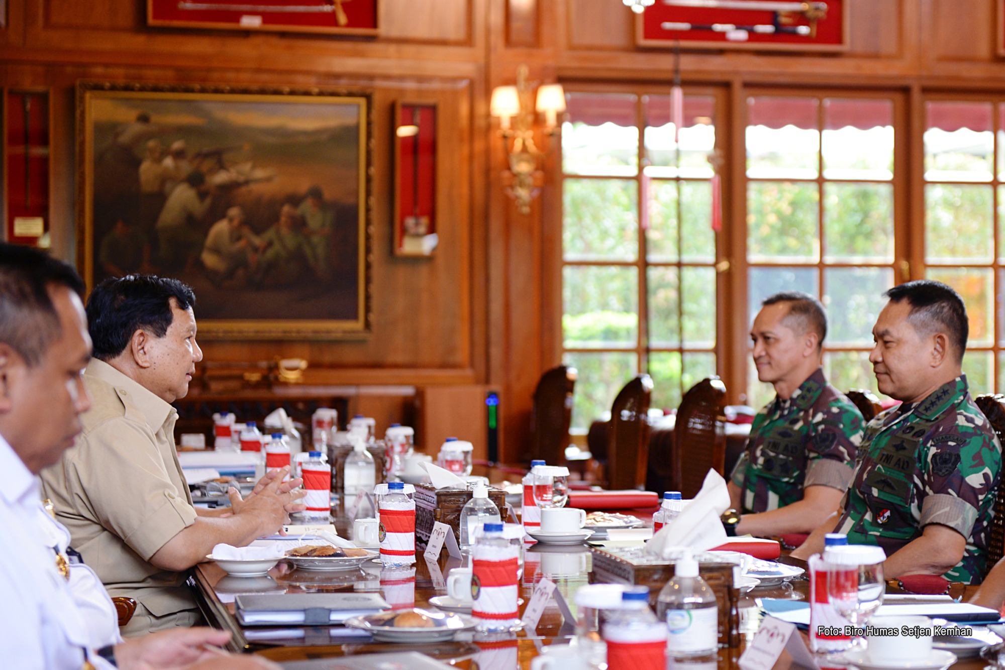 Menteri Pertahanan Republik Indonesia Prabowo Subianto menerima kunjungan Kepala Staf Angkatan Darat (Kasad) Jenderal TNI Dudung Abdurachman beserta jajarannya, Kamis (30/12) di Kementerian Pertahanan, Jakarta.