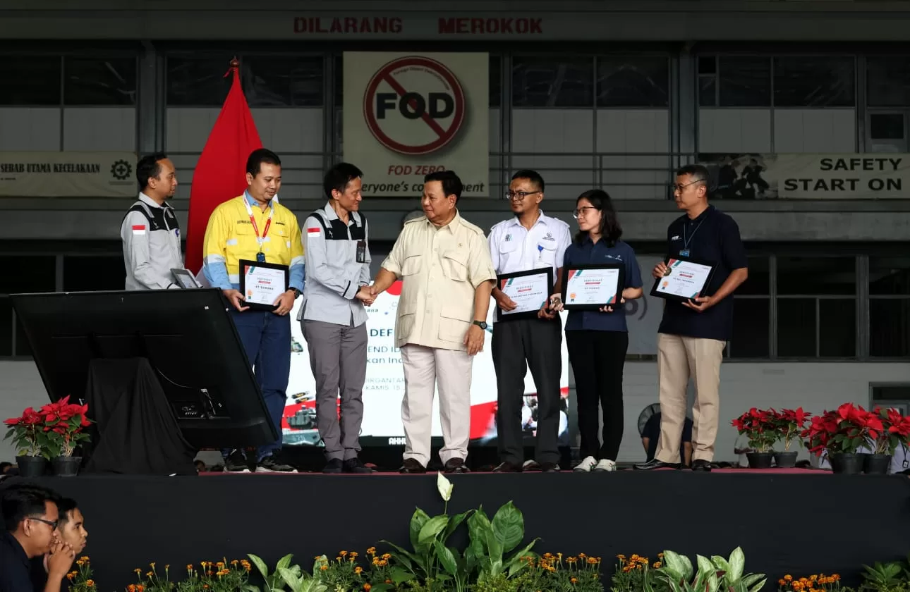 Bandung – Menteri Pertahanan (Menhan) Prabowo Subianto menghadiri The 1st DEFEND ID’s Day di hangar helikopter PTDI Bandung (15/6). Acara ini merupakan peringatan hari jadi DEFEND ID yaitu holding BUMN industri pertahanan dalam negeri yang terdiri dari PT Len Industri (Persero), PT Dahana, PT Pindad, PT Dirgantara Indonesia, dan PT PAL Indonesia.