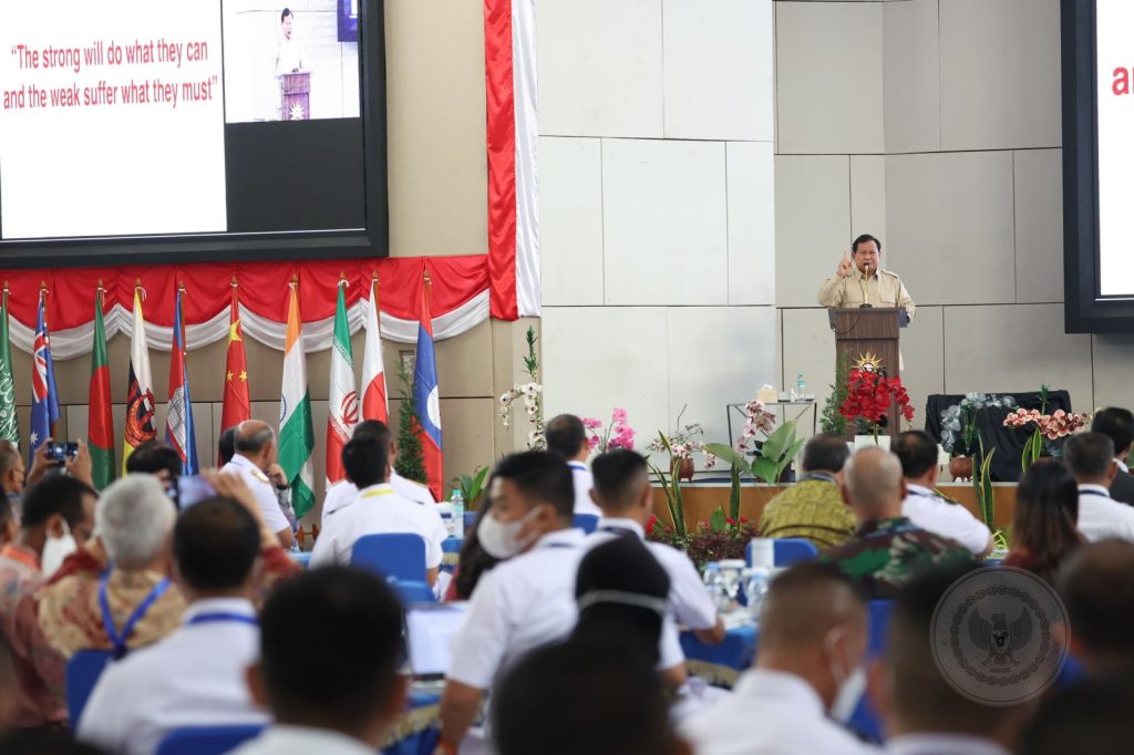 Menhan Prabowo menyatakan posisi wilayah Indonesia strategis di jalur perdagangan dunia. Oleh karena itu, konsekuensinya adalah Indonesia harus memiliki kekuatan maritim yang kuat.