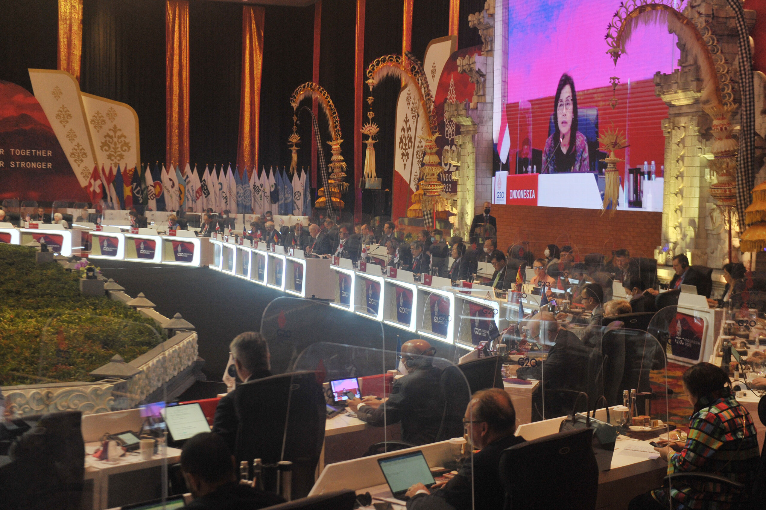 Pertemuan Menteri Keuangan dan Gubernur Bank Sentral (Finance Minister’s & Central Bank Governor’s Meeting/FMCBG) Negara G20 resmi dimulai secara hybrid di Nusa Dua, Bali (15/7). Pertemuan tersebut merupakan pertemuan ketiga FMCBG pada jalur keuangan (finance track) di bawah Presidensi Indonesia, setelah sebelumnya diselenggarakan pada bulan Februari 2022 di Jakarta dan April 2022 di Washington D.C. Pertemuan FMCBG yang akan berlangsung selama dua hari ke depan didahului pertemuan tingkat Deputi (Finance & Central Bank Deputies’ Meeting /FCBD) yang telah dilaksanakan secara hybrid pada 13-14 Juli 2022 di lokasi yang sama. Pertemuan Menteri Keuangan dan Gubernur Bank Sentral Negara G20 tersebut bertujuan mendorong ekonomi global mencapai pemulihan bersama yang lebih kuat di tengah meningkatnya tantangan yang semakin mengemuka.