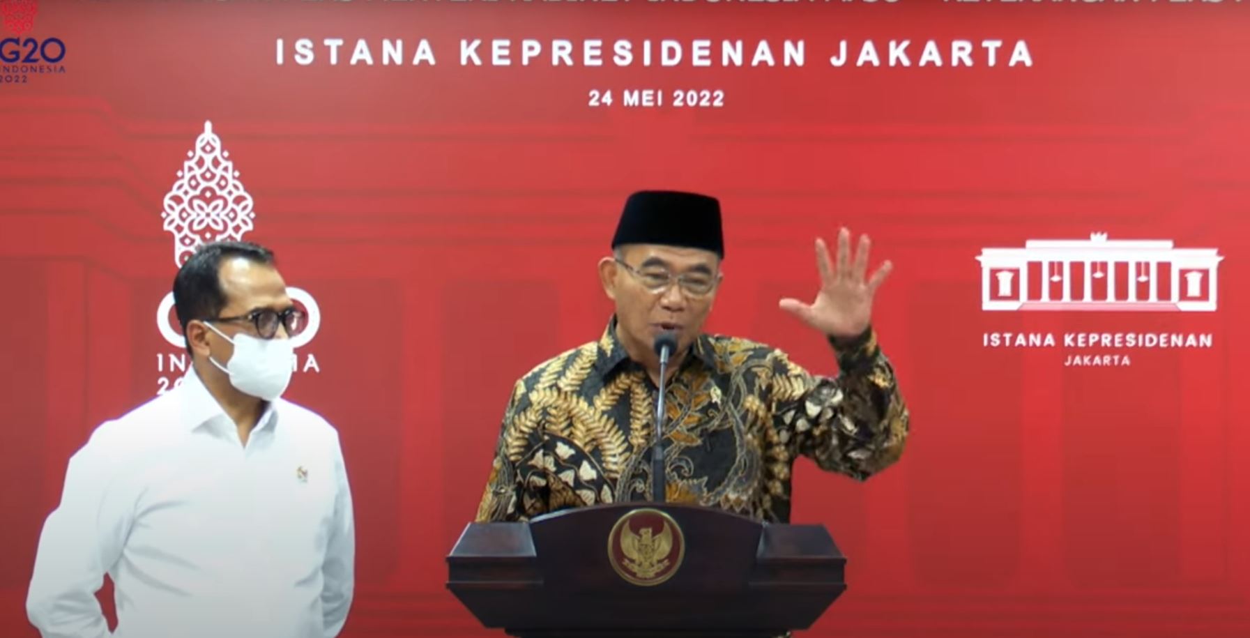 “Bapak Presiden menyampaikan terima kasih kepada seluruh warga masyarakat, terutama mereka yang telah menjalankan mudik tahun 2022, atas kedisiplinannya, kepatuhannya terhadap ketentuan-ketentuan yang telah diberlakukan oleh pemerintah, termasuk di dalamnya adalah tertib menggunakan jalan ketika sedang perjalanan, termasuk juga kepatuhan patuh terhadap protokol kesehatan, dan kepatuhan-kepatuhan yang lain,” ujar Menteri Pembangunan Manusia dan Kebudayaan (Menko PMK) Muhadjir Effendy, dalam keterangan pers usai Ratas.