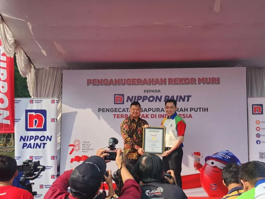 “Museum Rekor – Dunia Indonesia dengan bangga memberikan piagam penghargaan atas rekor ke-4 untuk Pengecatan Gapura Merah Putih Terbanyak. Selamat kepada Nippon Paint atas rekor yang telah dipecahkan melalui pengecatan 24.349 Gapura di Indonesia. Semoga ke depannya, melalui program-program CSR seperti Gapura Merah Putih ini dapat menjangkau lebih banyak lagi wilayah-wilayah lain di Indonesia sehingga semakin memberikan dampak positif terhadap persatuan dan kesatuan bangsa,” pungkas Osmar.