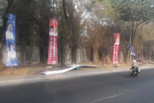 Hanya alat peraga kampanye milik Airin-Benyamin yang rusak, sedang milik pasangan lainnya tetap berdiri kokoh.