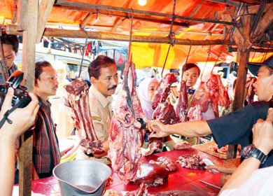 Dinas Perindustrian dan Perdagangan Kota Tangerang Selatan menggelar inspeksi mendadak (Sidak) atas komoditas daging di salah satu pasar Kemarin (25-7-2013)