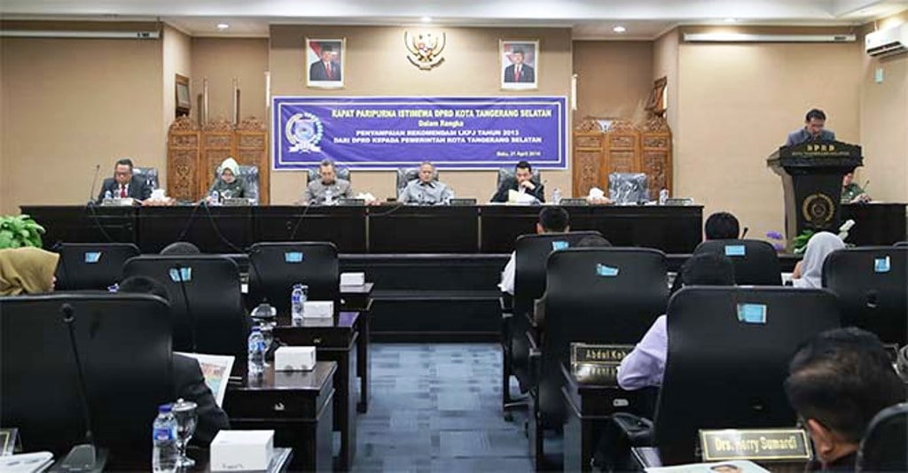 Pemerintah Kota Tangerang Selatan (Tangsel) memenuhi undangan Dewan Perwakilan Rakyat Daerah (DPRD) setempat dalam acara Rapat Paripurna Istimewa Penyampaian Rekomendasi Terhadap Laporan Pertanggungjawaban (LKPj) Tahun Anggaran 2013.