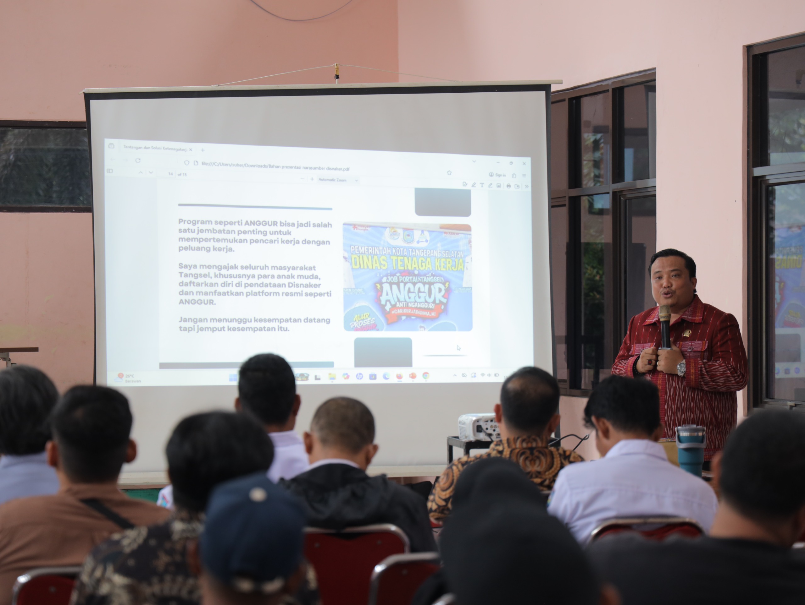 Pemerintah Kota Tangerang Selatan (Tangsel) melalui Dinas Ketenagakerjaan (Disnaker) menggelar kegiatan Sosialisasi Portal Job Anggur (Anti Nganggur). Langkah ini sebagai upaya memperluas akses informasi kerja bagi masyarakat, khususnya di wilayah Tangsel.