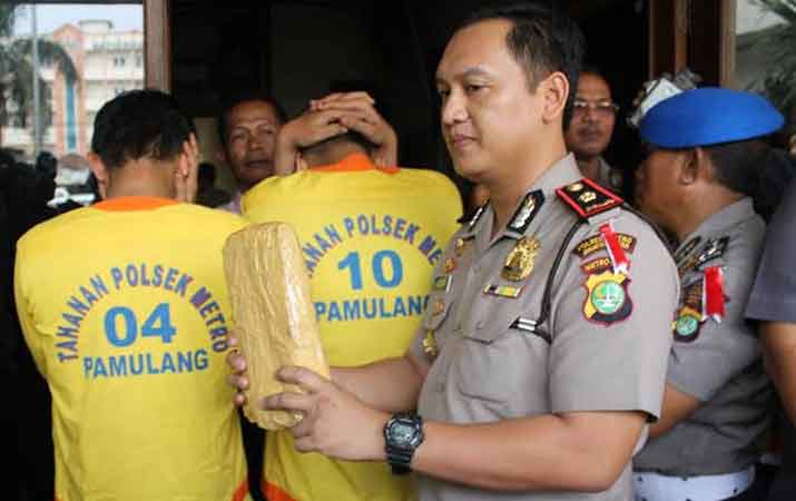Polsek Pamulang berhasil mencokok tiga pengedar ganja di Kawasan Ciputat, Tangerang Selatan (Tangsel). Mereka ditahan petugas Polsek Pamulang, Kamis (26/3/2015). “Kami terima laporan adanya praktik peredaran ganja di kawasan Ciputat. Lantas kami mendalami laporan tersebut, ternyata benar,” kata Kapolsek Pamulang, Kompol Dody Ferdinand Sanjaya, Kamis (26/3/2015).