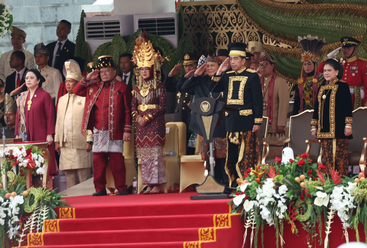 Kaltim – Menteri Pertahanan RI Prabowo Subianto mendampingi Presiden RI Joko Widodo (Jokowi) dalam peringatan Hari Ulang Tahun (HUT) ke-79 Kemerdekaan Republik Indonesia di Istana Garuda Ibu Kota Nusantara (IKN) Penajam Kaltim, Sabtu (17/8).