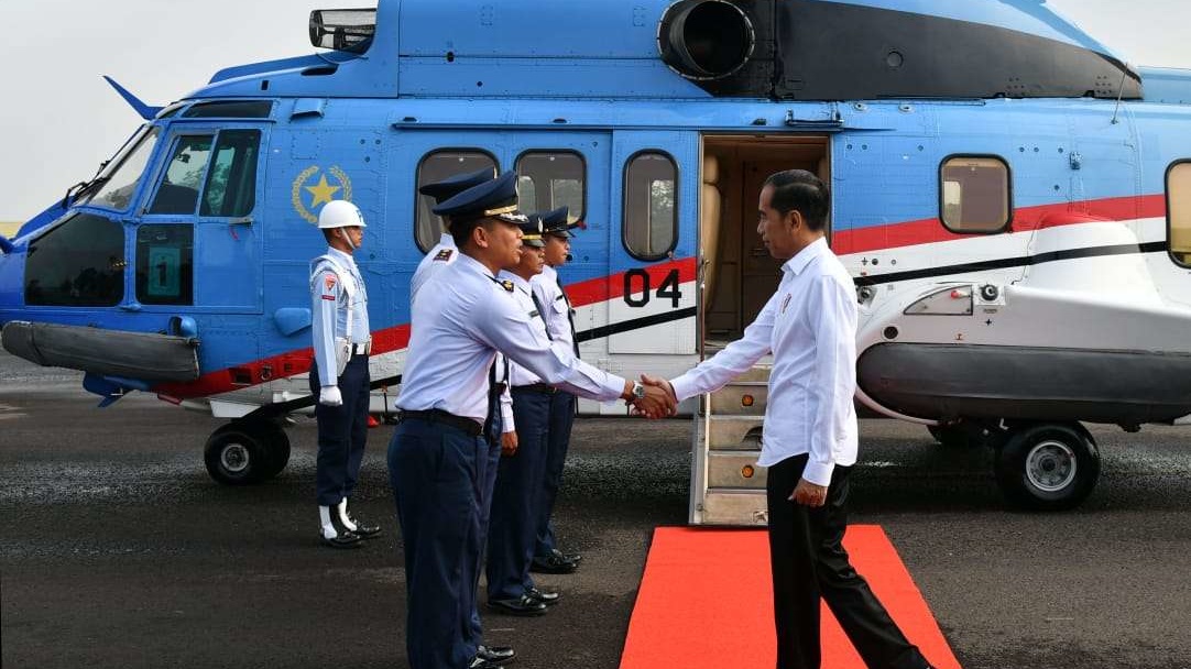 Dari Pangkalan TNI AU Atang Sanjaya, Kabupaten Bogor, Presiden dan rombongan lepas landas sekitar pukul 08.10 WIB dengan menggunakan helikopter Super Puma TNI AU.