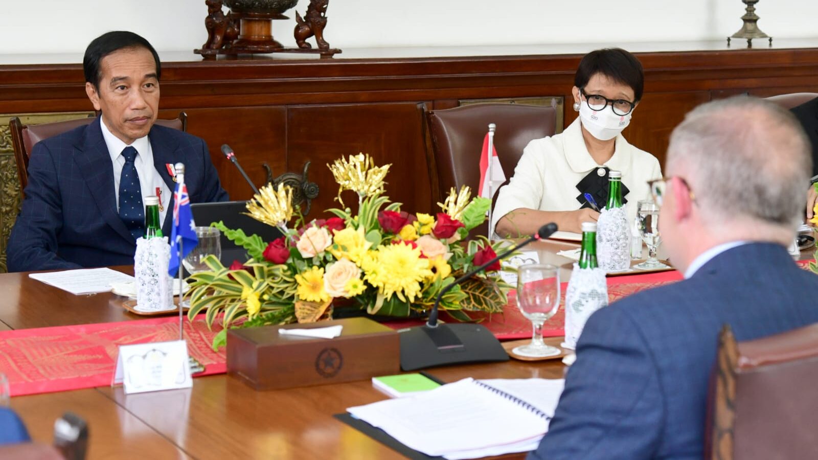 Presiden Joko Widodo menggelar pertemuan bilateral dengan Perdana Menteri (PM) Australia Anthony Albanese dalam kunjungan resminya ke Istana Kepresidenan Bogor, Jawa Barat, pada Senin, 6 Juni 2022. Dalam pertemuan tersebut, kedua pemimpin negara membahas sejumlah upaya kerja sama bilateral utamanya dalam bidang ekonomi.