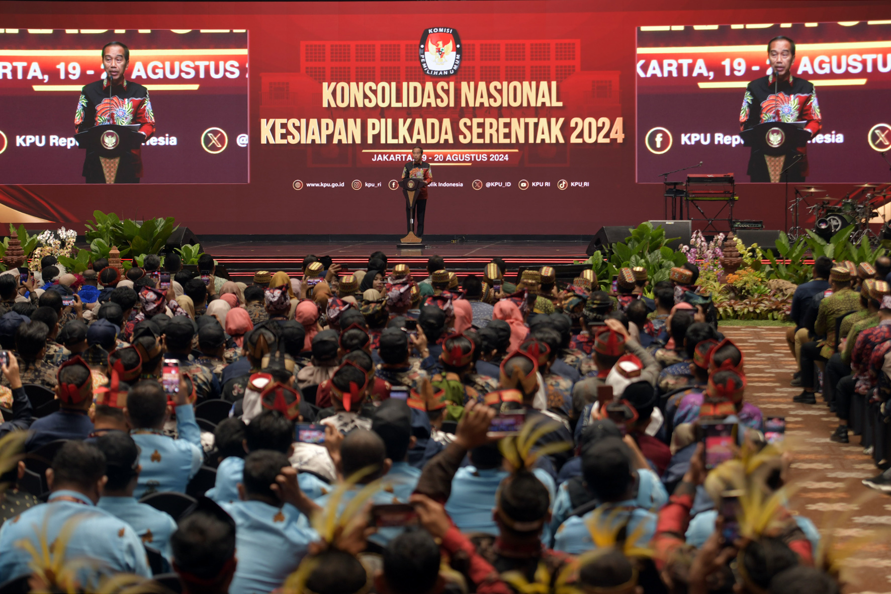 Presiden RI Joko Widodo (Jokowi) mengapresiasi kerja keras Komisi Pemilihan Umum (KPU) dalam penyelenggaraan Pemilu Pilpres (Pemilihan Presiden) dan Pileg (Pemilihan Legislatif) tahun 2024. Hal tersebut disampaikan Presiden pada Rapat Koordinasi Nasional (Rakornas) dalam rangka Kesiapan Pilkada Tahun 2024, di Jakarta Convention Center (JCC), Jakarta, Selasa (20/08/2024) pagi.